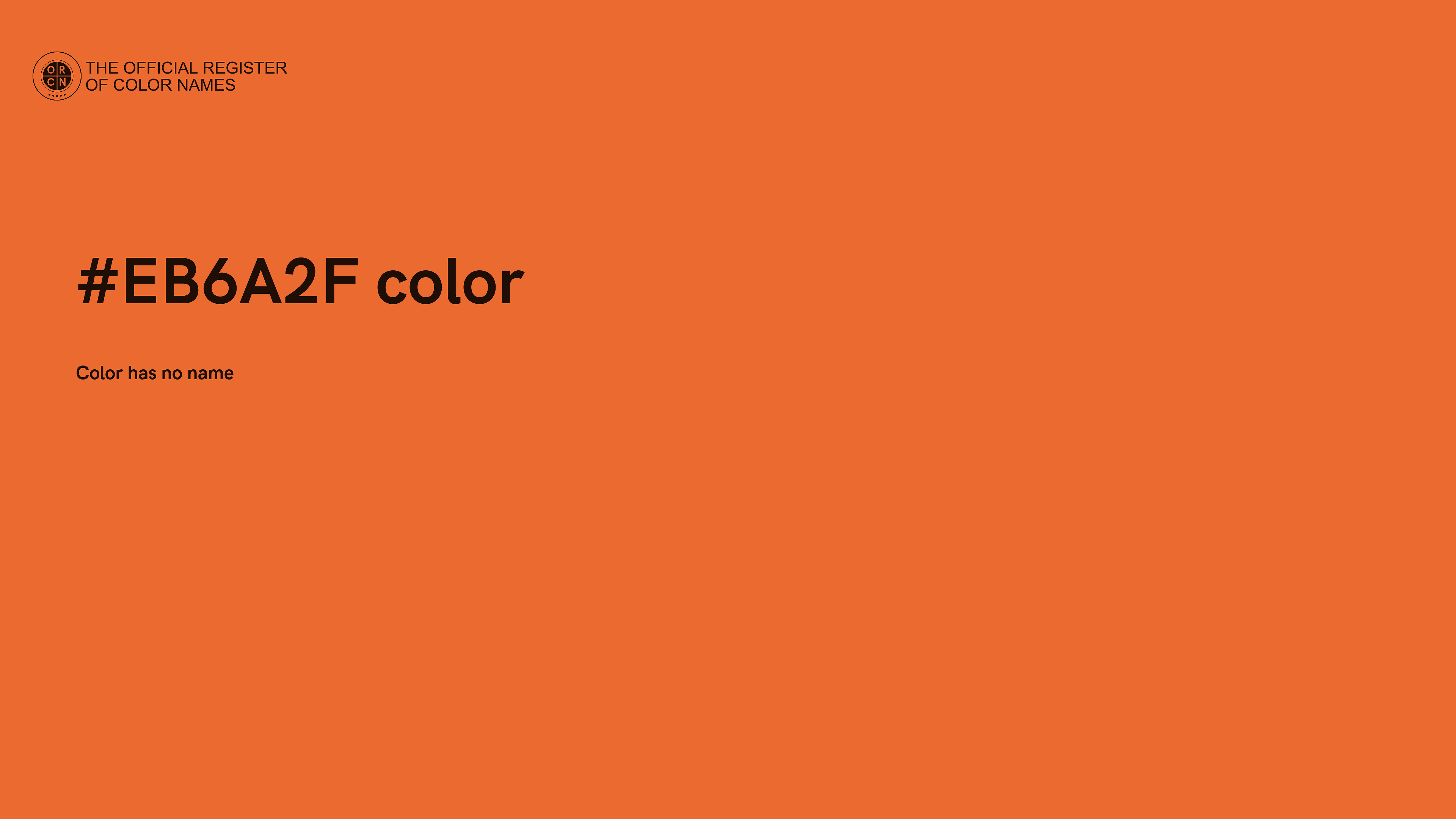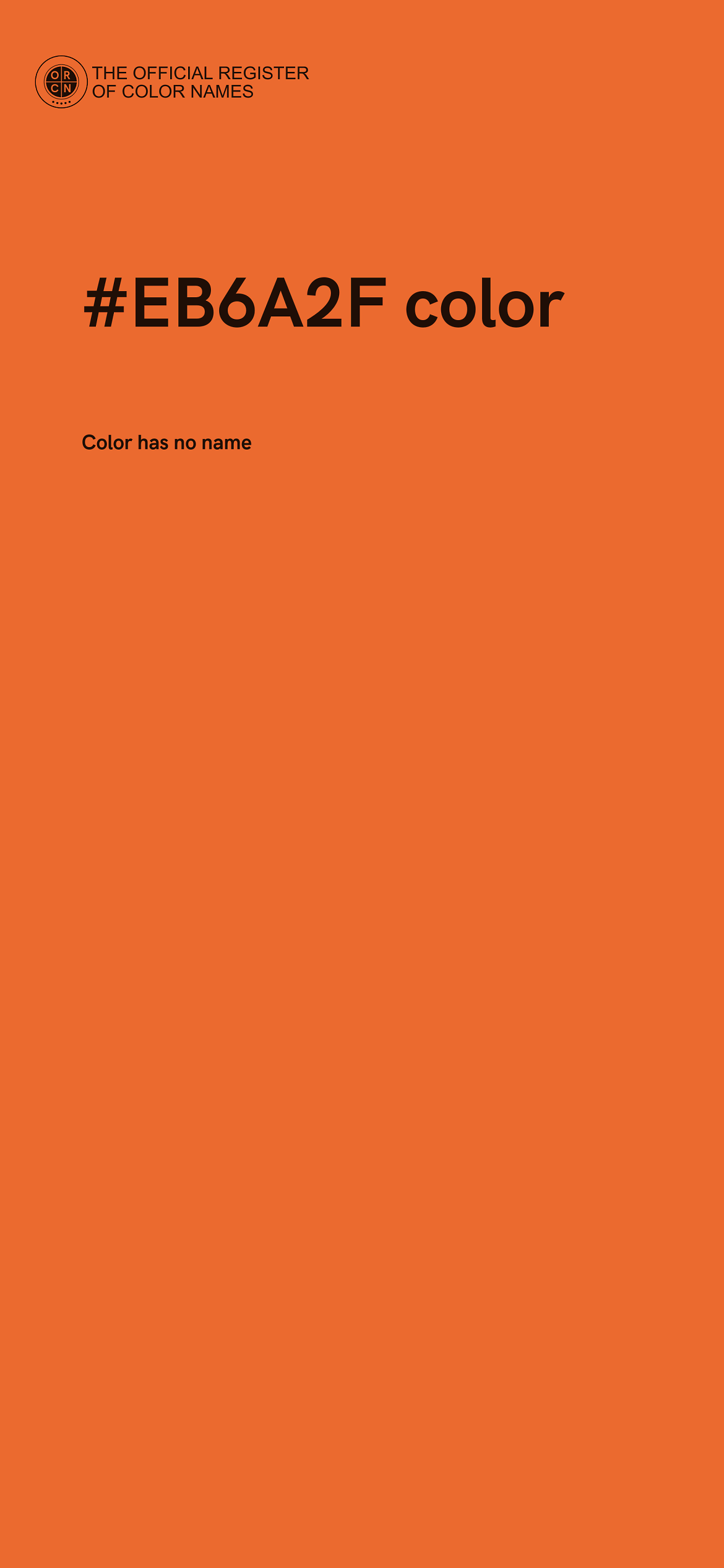 For printing in non digital world, #EB6A2F is represented in CMYK as 0 Cyan, 51 Magenta, 74 Yellow, and 8 Black (Key) (C:0 M:51 Y:74 K:8).