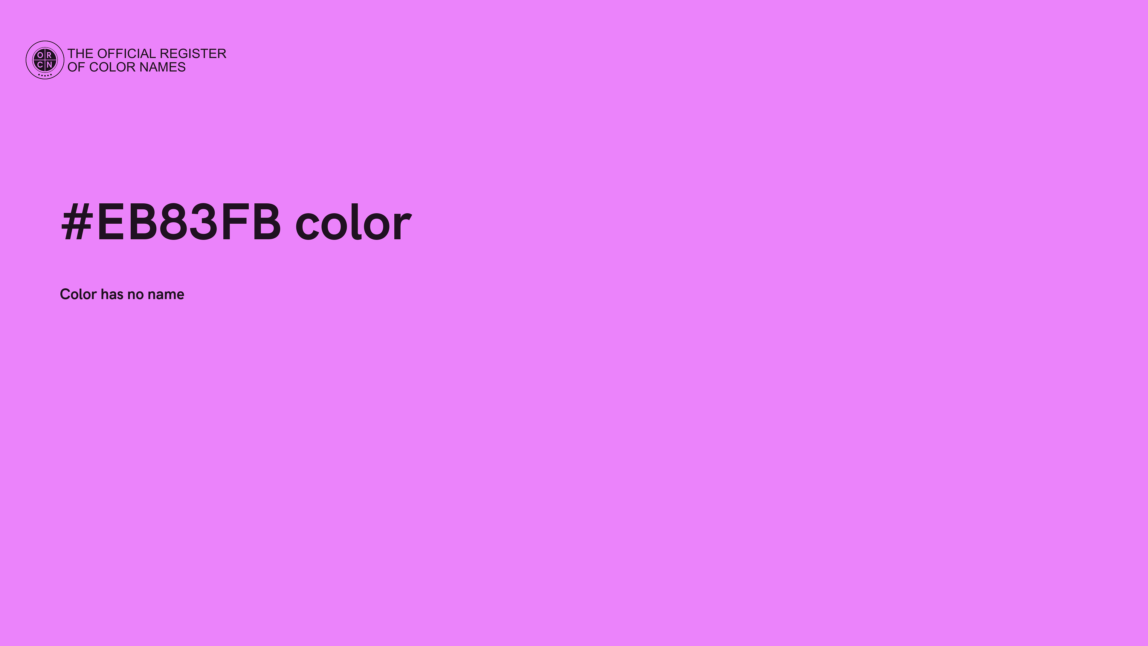 The digital color HEX #EB83FB belongs to the Magenta Color Family featuring Full Saturation (Saturation Family) and Very Light (Brightness Family).