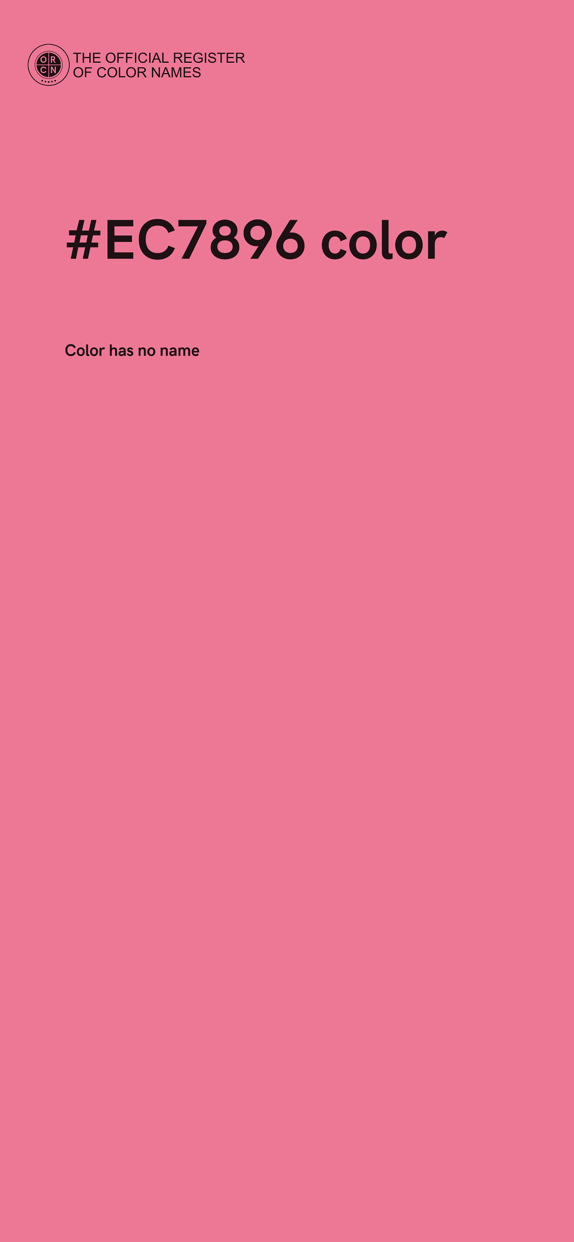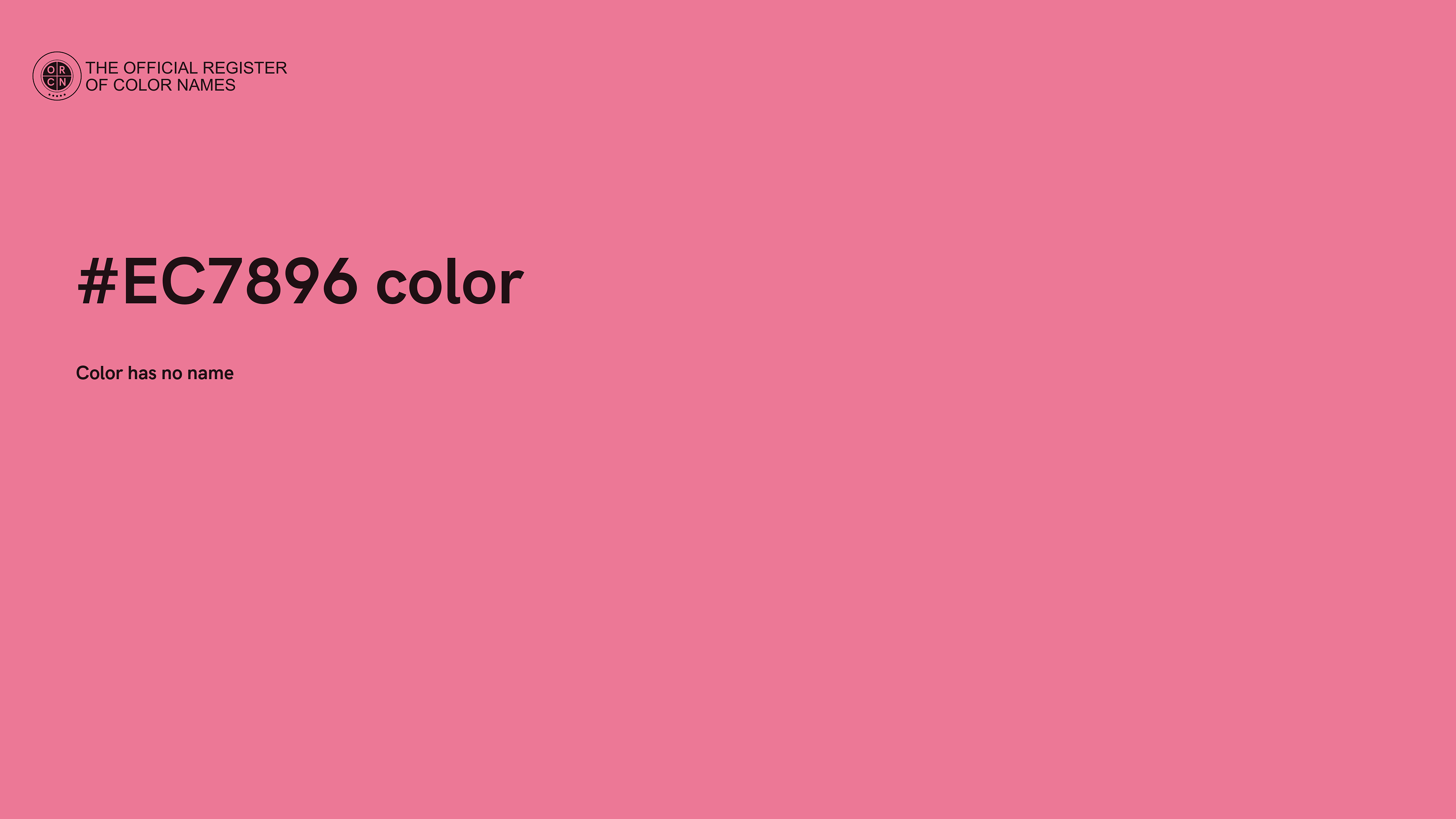 The digital color HEX #EC7896 belongs to the Rose Color Family featuring High Saturation (Saturation Family) and Very Light (Brightness Family).