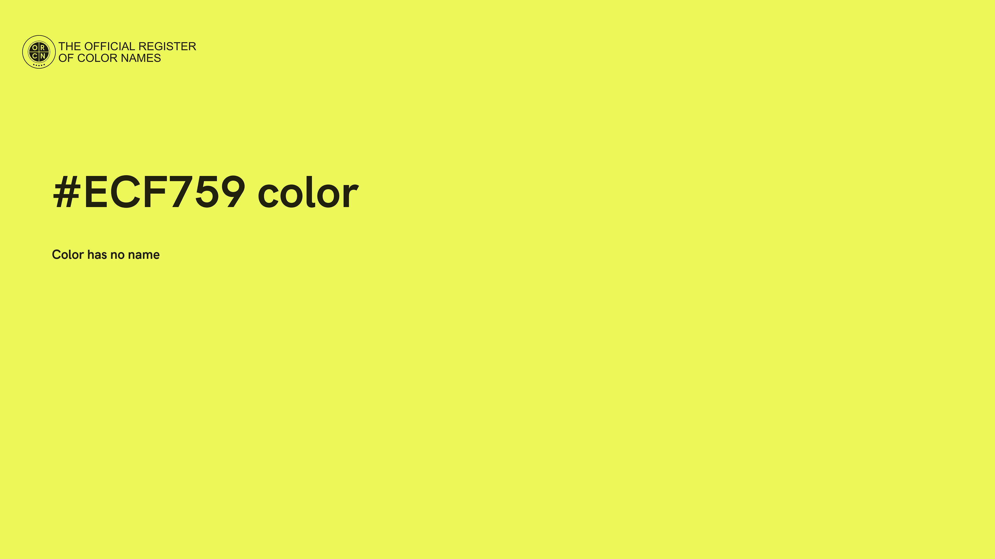 For printing in non digital world, #ECF759 is represented in CMYK as 4 Cyan, 0 Magenta, 62 Yellow, and 3 Black (Key) (C:4 M:0 Y:62 K:3).