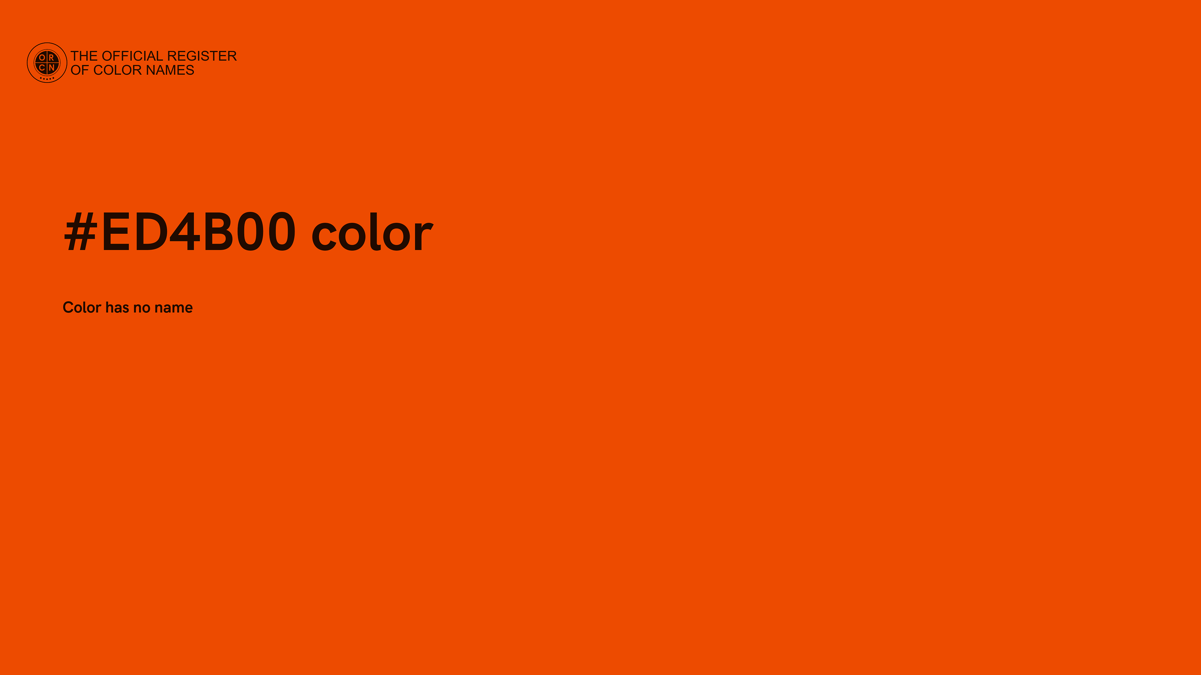 The digital color HEX #ED4B00 belongs to the Orange Color Family featuring Full Saturation (Saturation Family) and Light (Brightness Family).