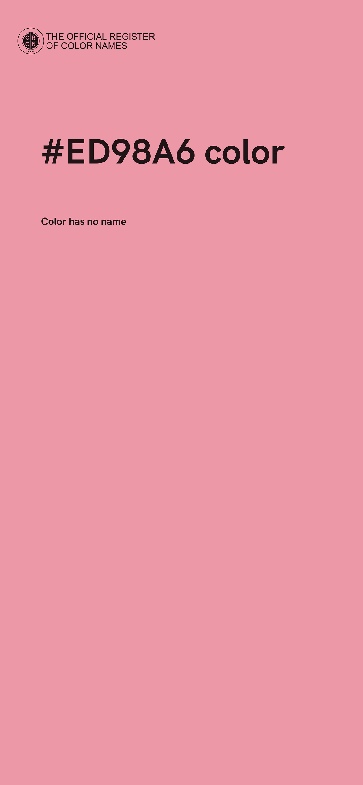 The digital color HEX #ED98A6 belongs to the Red Color Family featuring High Saturation (Saturation Family) and Very Light (Brightness Family).