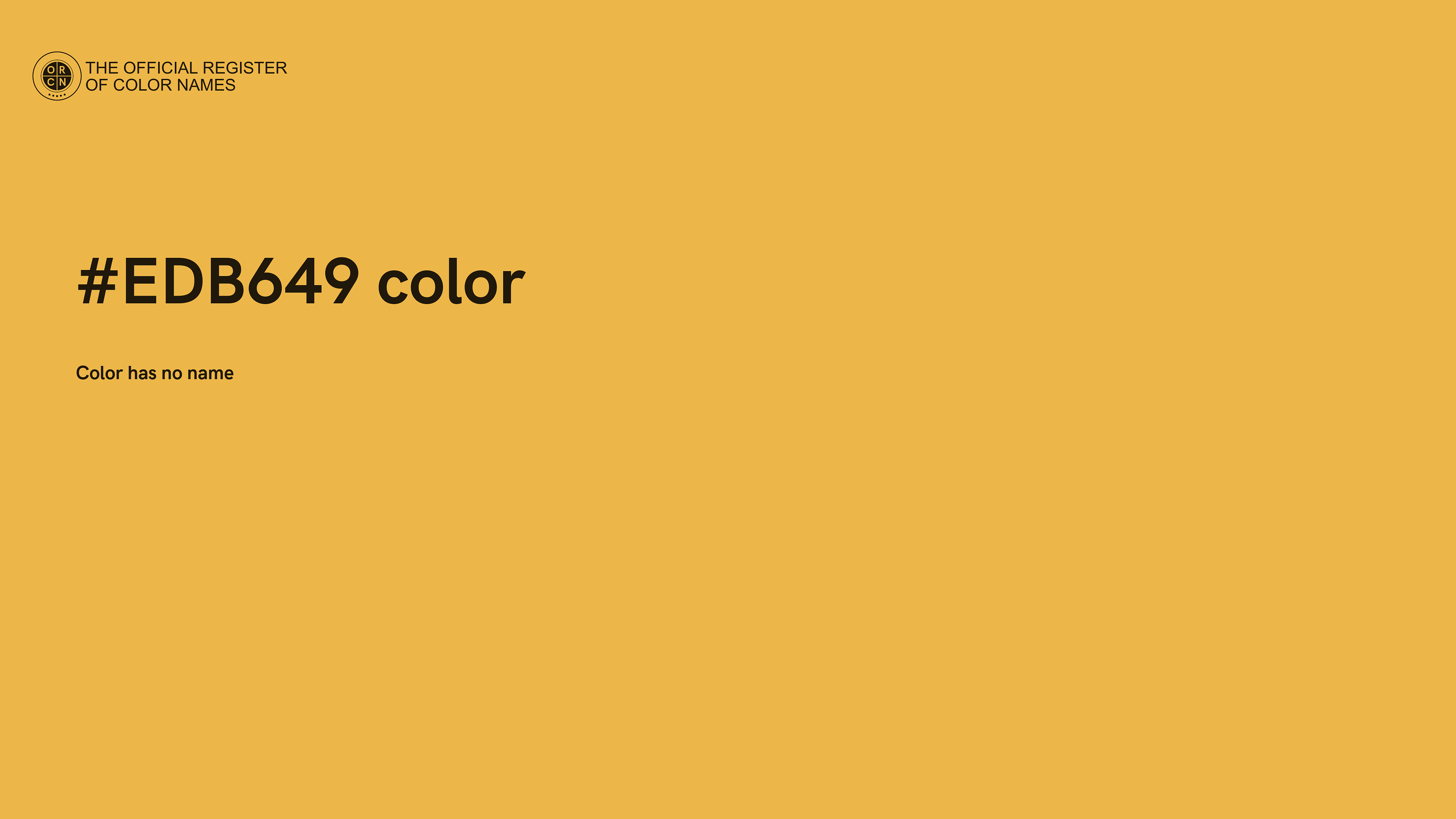 The digital color HEX #EDB649 belongs to the Orange Color Family featuring High Saturation (Saturation Family) and Very Light (Brightness Family).