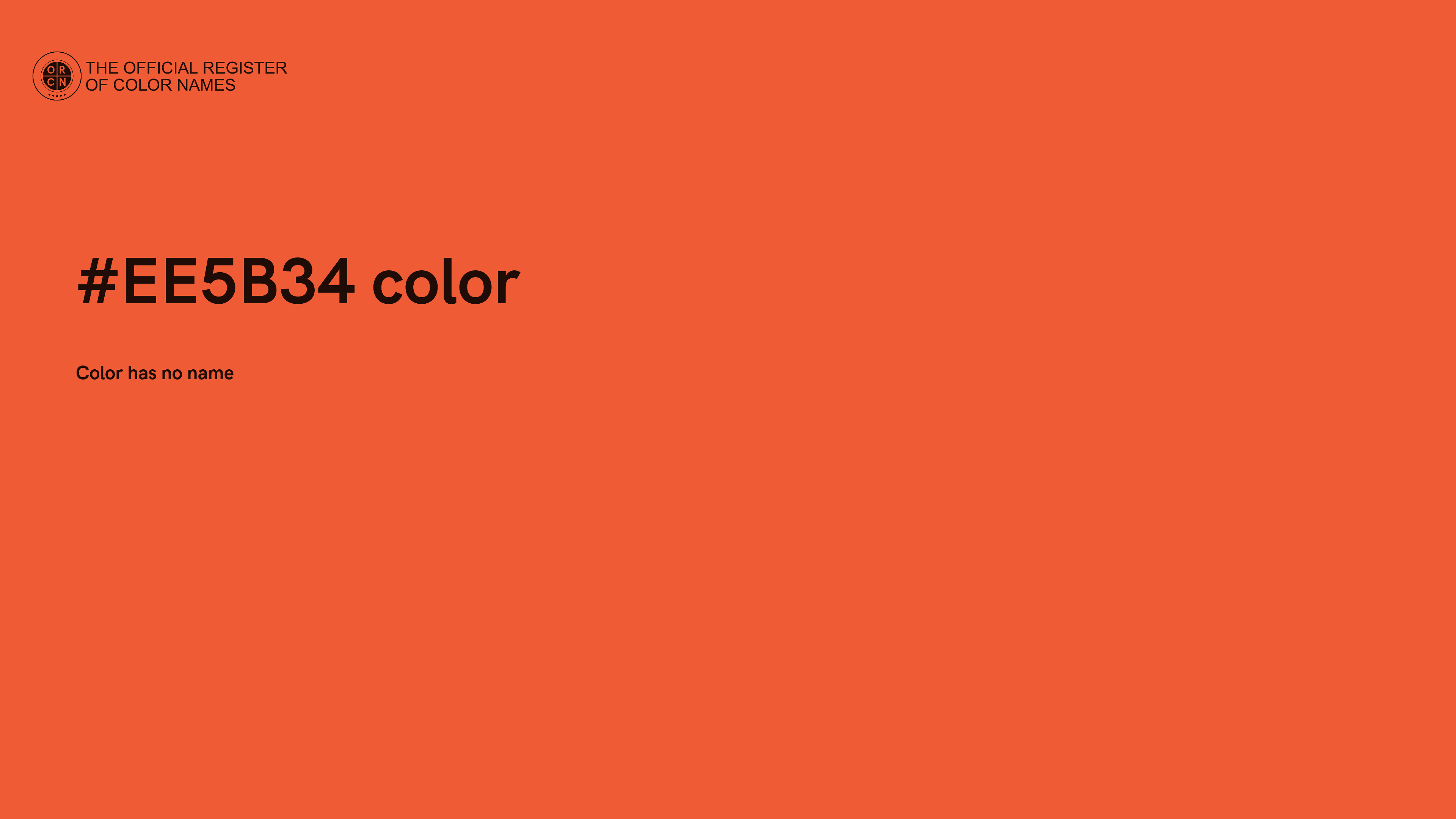 The digital color HEX #EE5B34 belongs to the Red Color Family featuring Full Saturation (Saturation Family) and Light (Brightness Family).