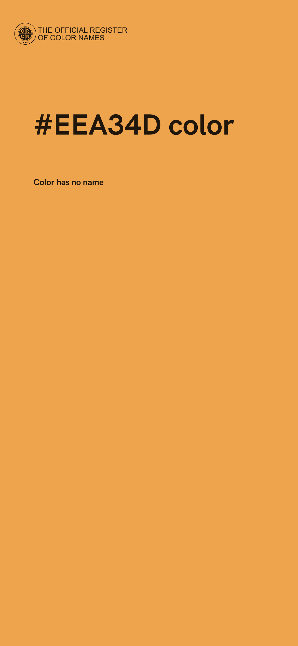 For printing in non digital world, #EEA34D is represented in CMYK as 0 Cyan, 29 Magenta, 63 Yellow, and 7 Black (Key) (C:0 M:29 Y:63 K:7).
