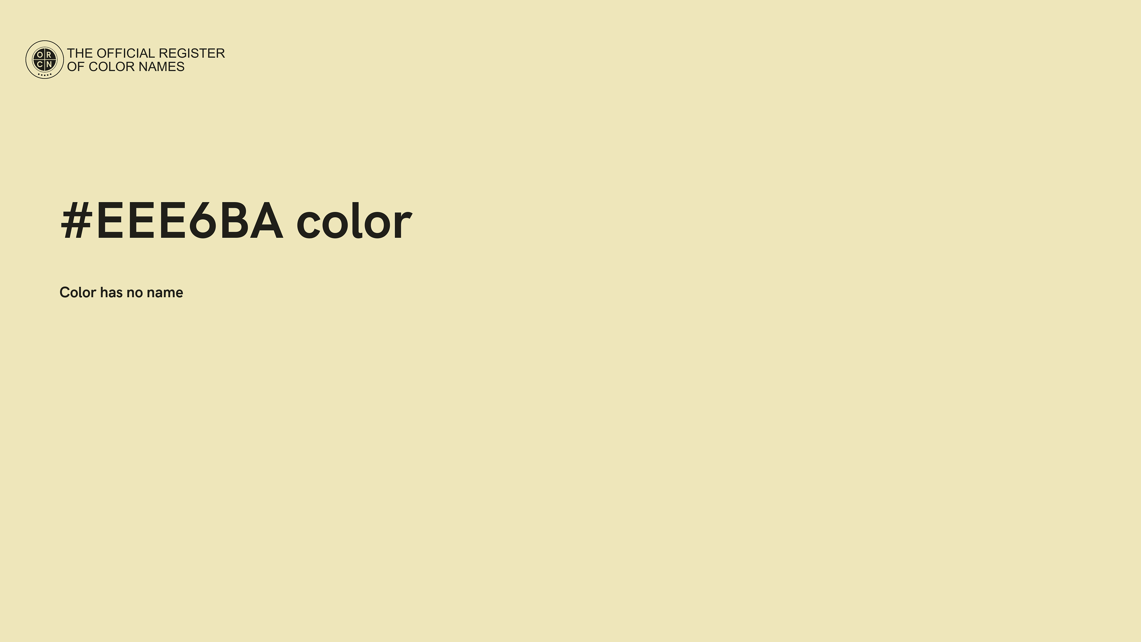 The digital color HEX #EEE6BA belongs to the Yellow Color Family featuring High Saturation (Saturation Family) and Very Light (Brightness Family).
