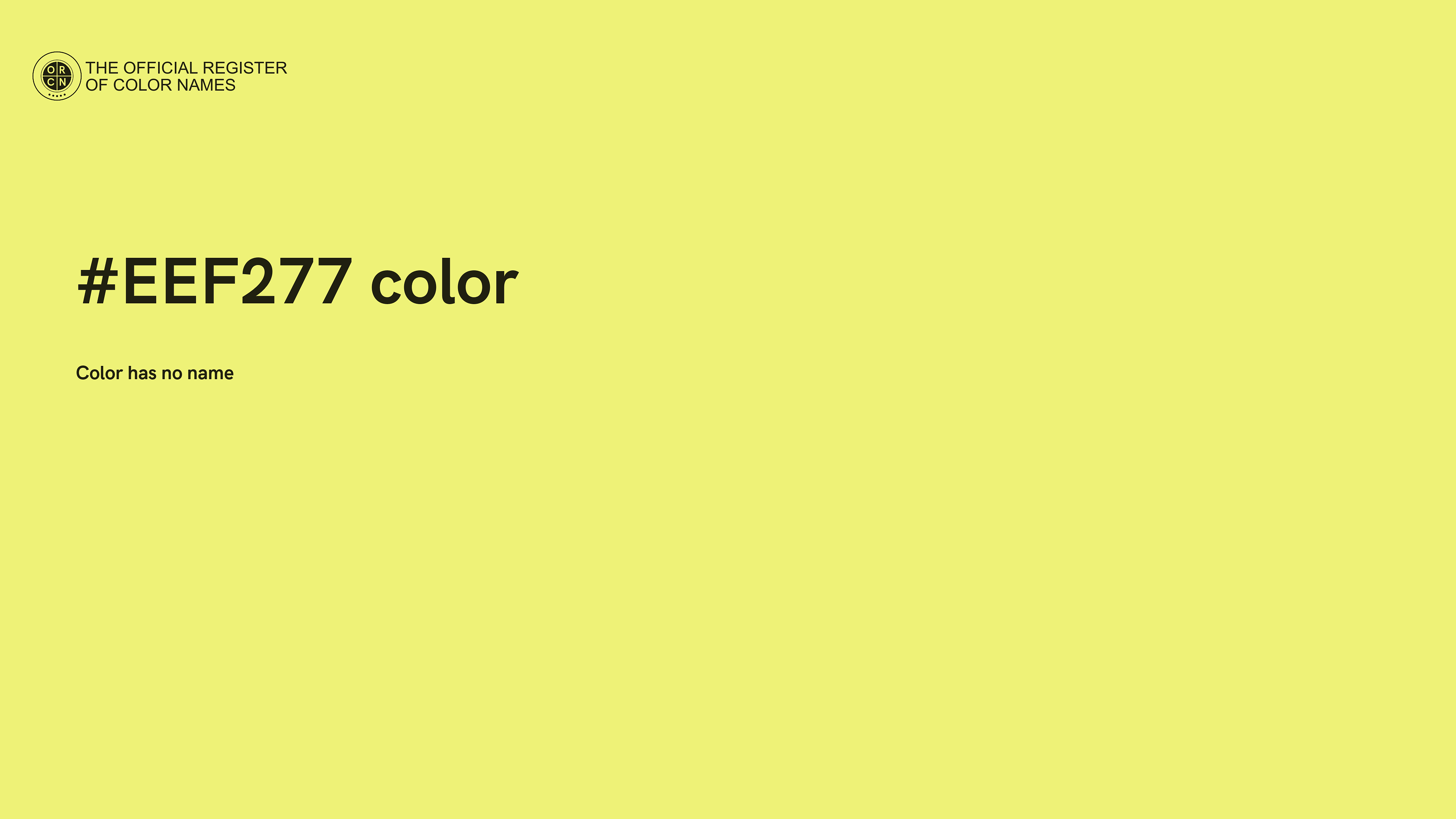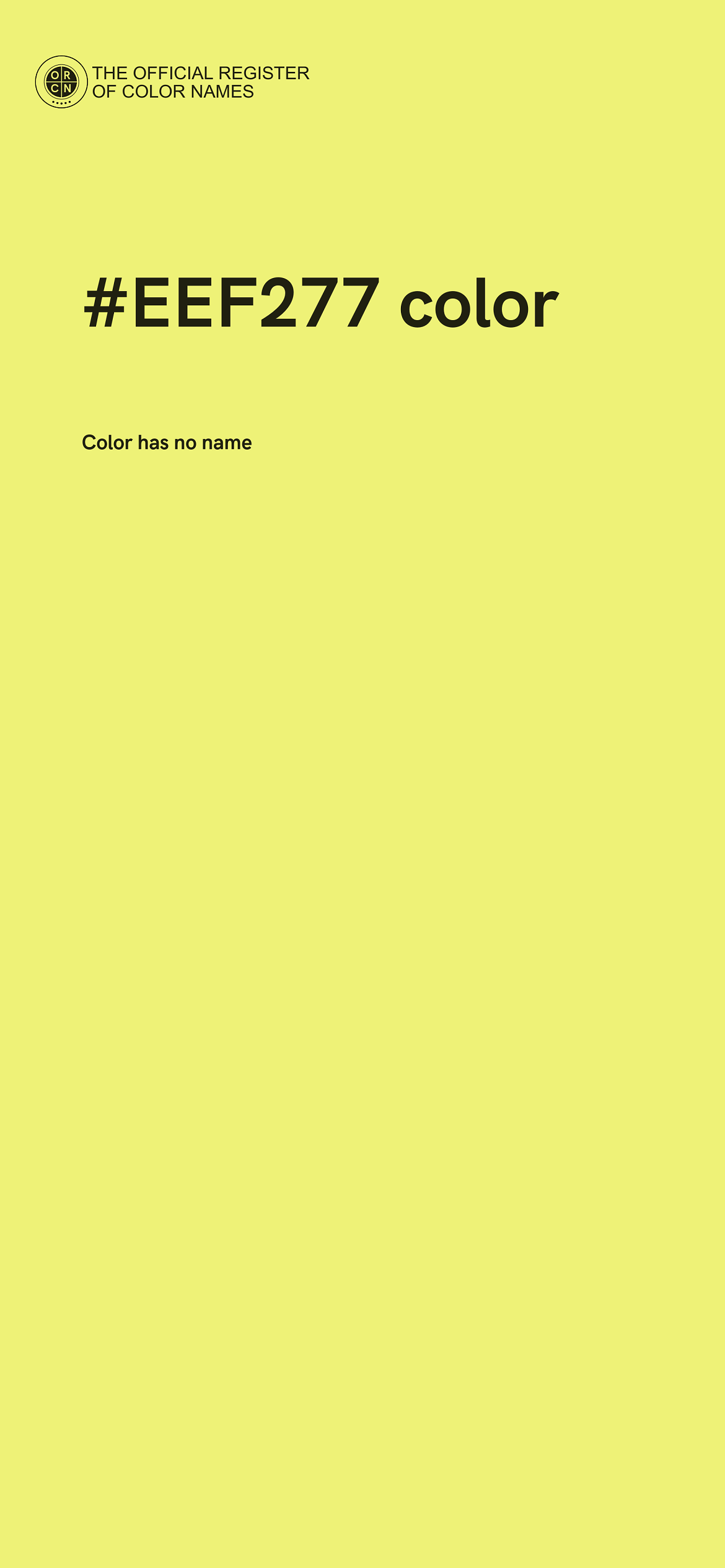 The digital color HEX #EEF277 belongs to the Yellow Color Family featuring High Saturation (Saturation Family) and Very Light (Brightness Family).