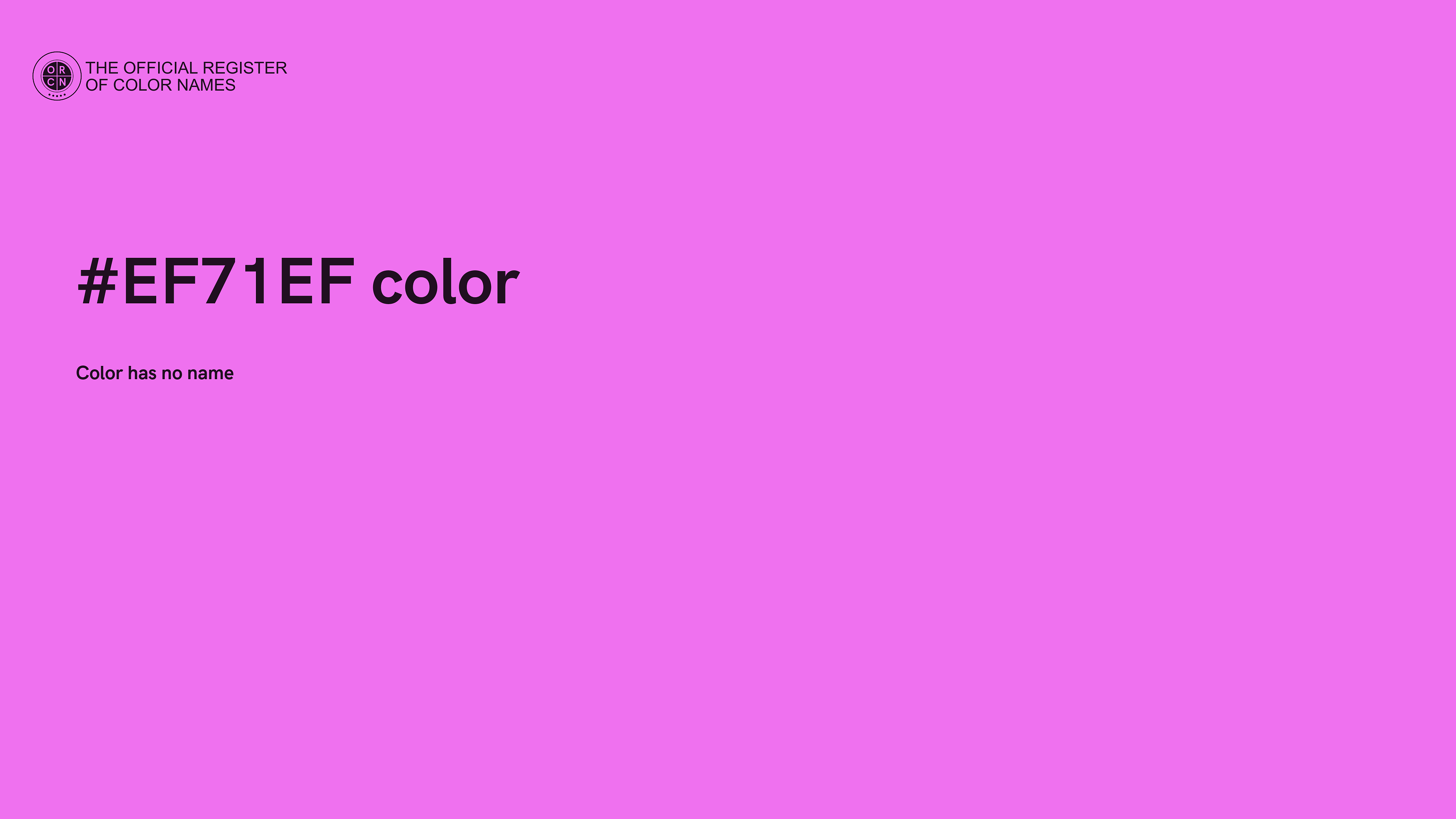 For printing in non digital world, #EF71EF is represented in CMYK as 0 Cyan, 49 Magenta, 0 Yellow, and 6 Black (Key) (C:0 M:49 Y:0 K:6).