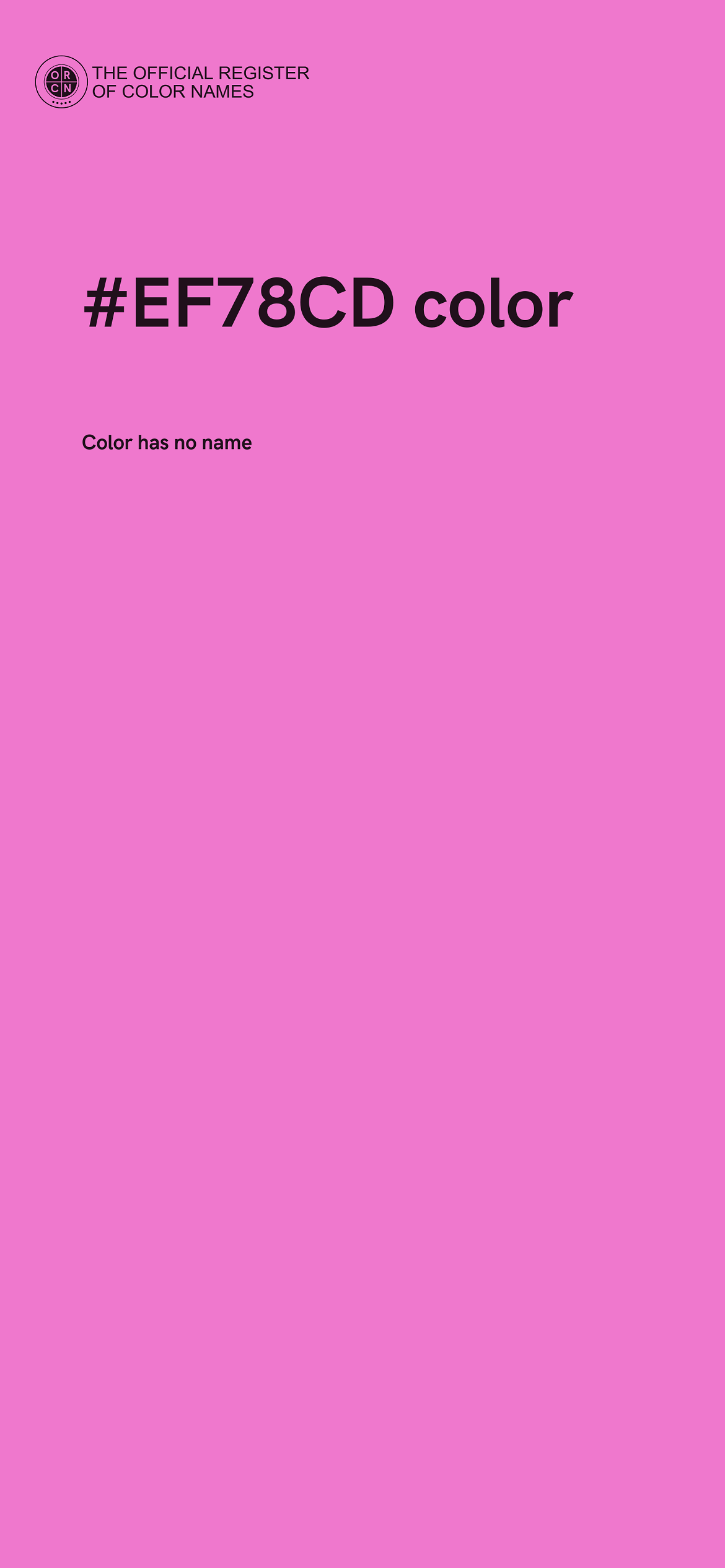 For printing in non digital world, #EF78CD is represented in CMYK as 0 Cyan, 47 Magenta, 13 Yellow, and 6 Black (Key) (C:0 M:47 Y:13 K:6).