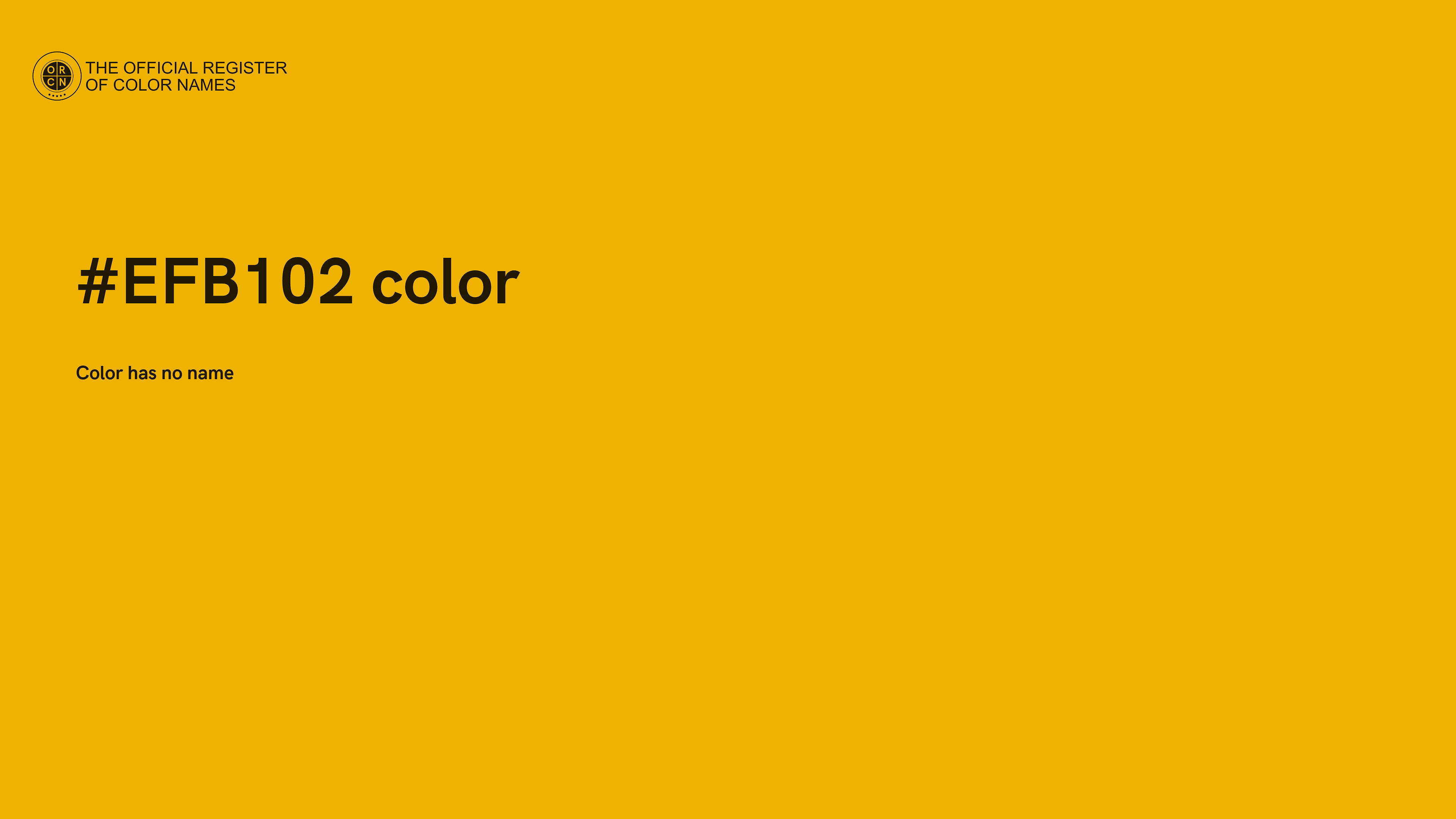 The digital color HEX #EFB102 belongs to the Orange Color Family featuring Full Saturation (Saturation Family) and Light (Brightness Family).