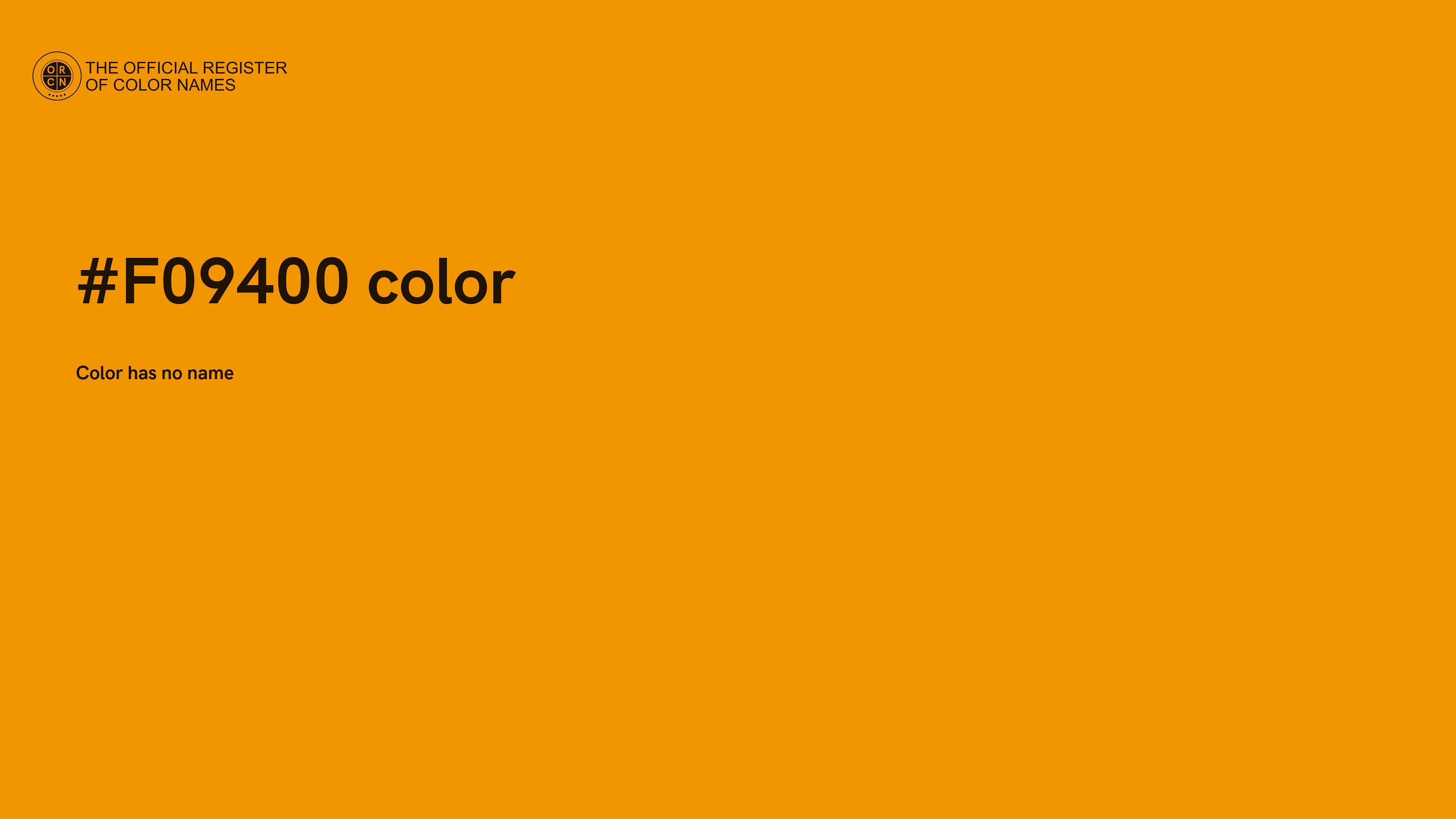 The digital color HEX #F09400 belongs to the Orange Color Family featuring Full Saturation (Saturation Family) and Light (Brightness Family).