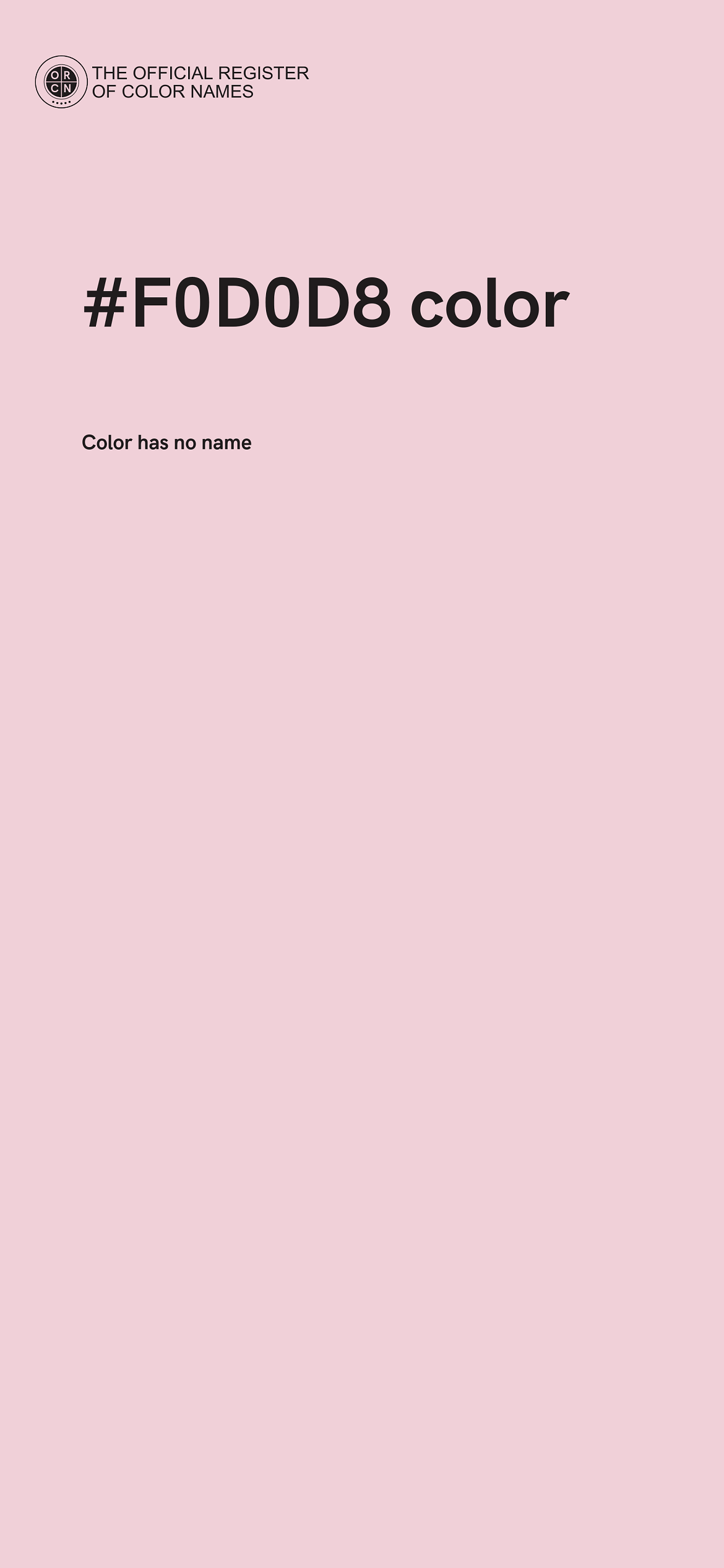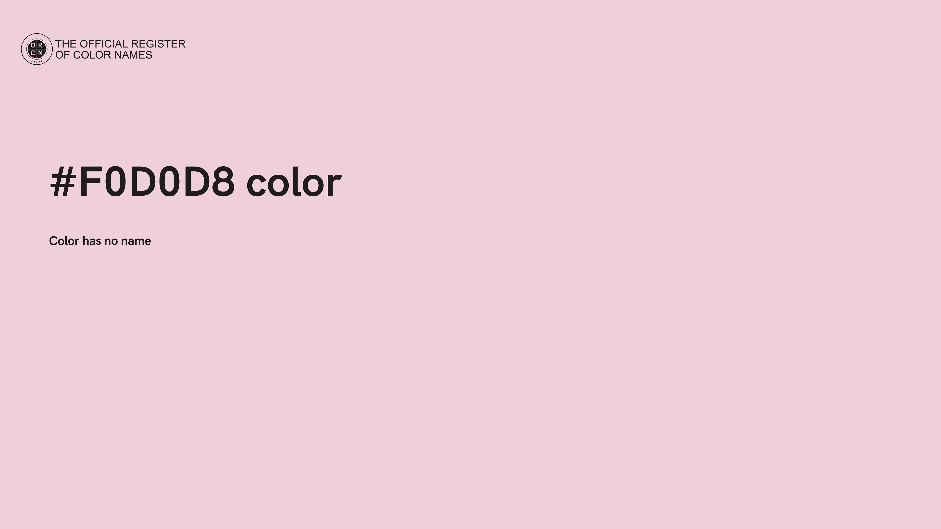 For printing in non digital world, #F0D0D8 is represented in CMYK as 0 Cyan, 13 Magenta, 9 Yellow, and 6 Black (Key) (C:0 M:13 Y:9 K:6).