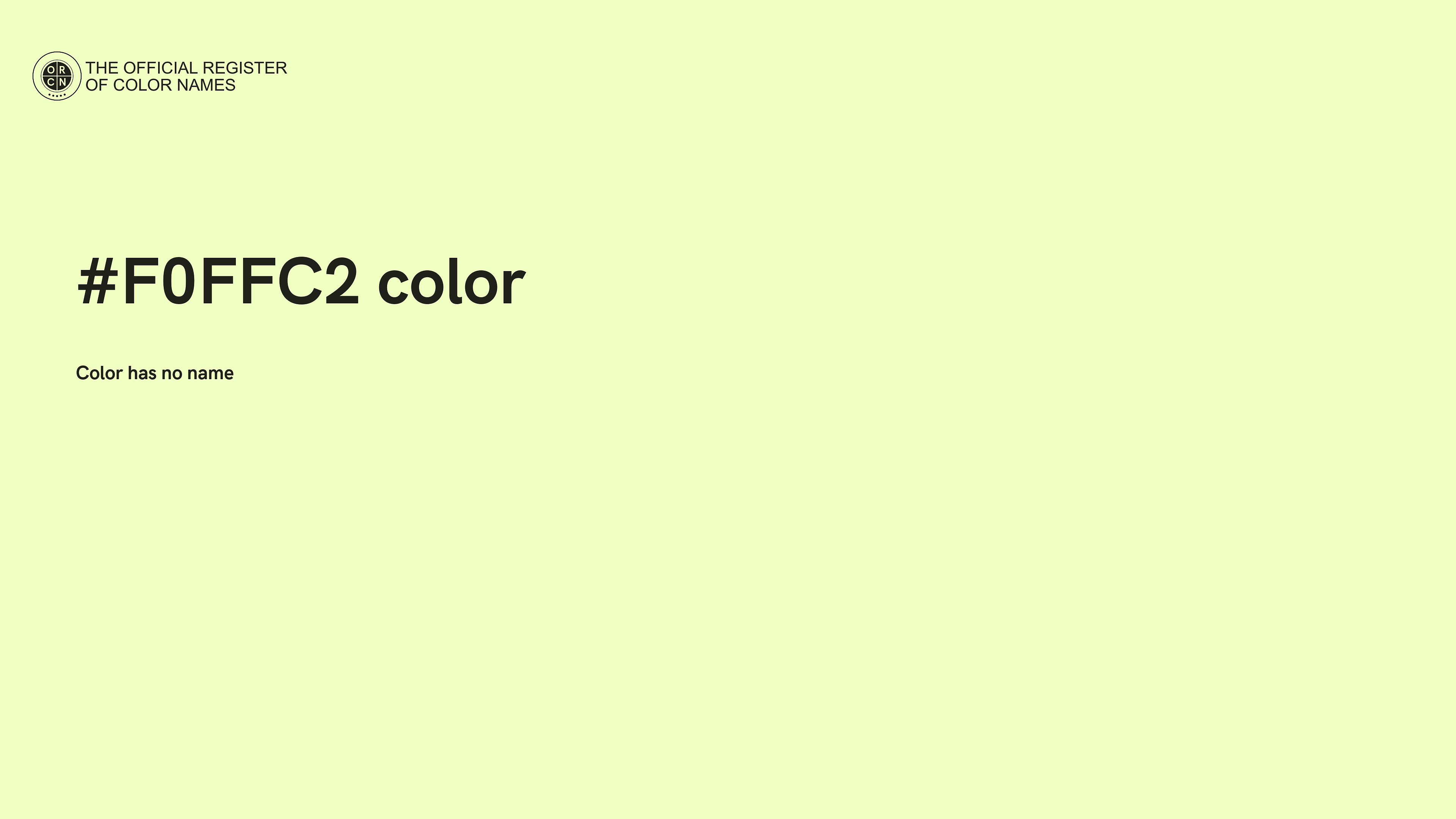 The digital color HEX #F0FFC2 belongs to the Chartreuse Color Family featuring Full Saturation (Saturation Family) and Luminous (Brightness Family).