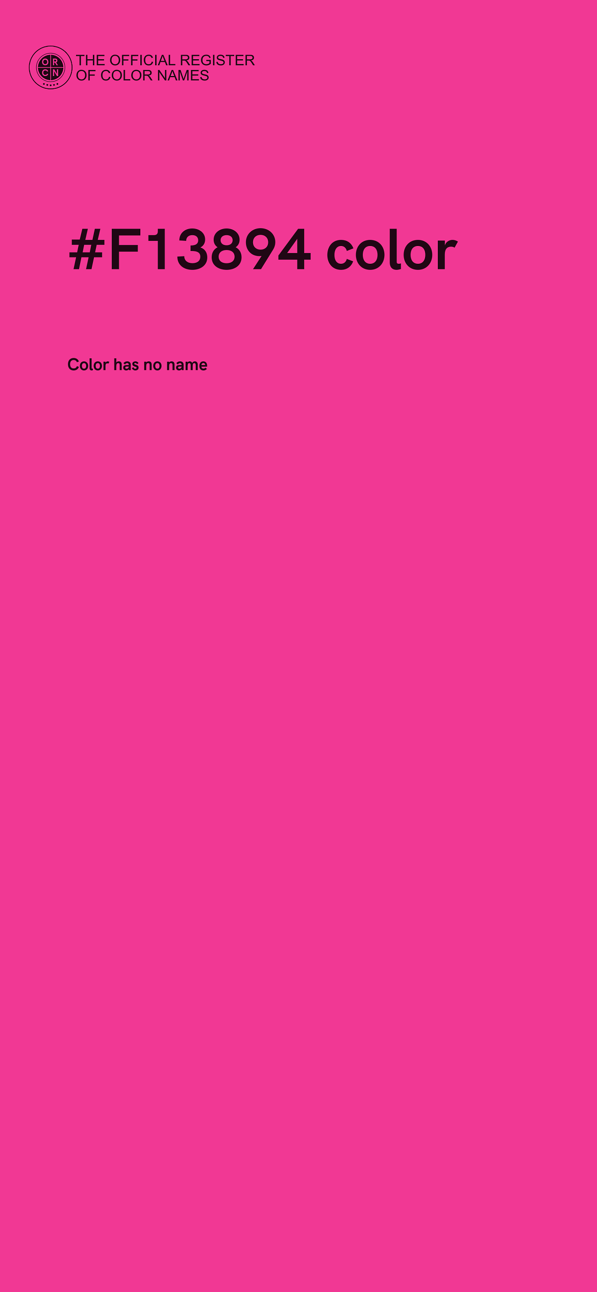 The digital color HEX #F13894 belongs to the Rose Color Family featuring Full Saturation (Saturation Family) and Light (Brightness Family).
