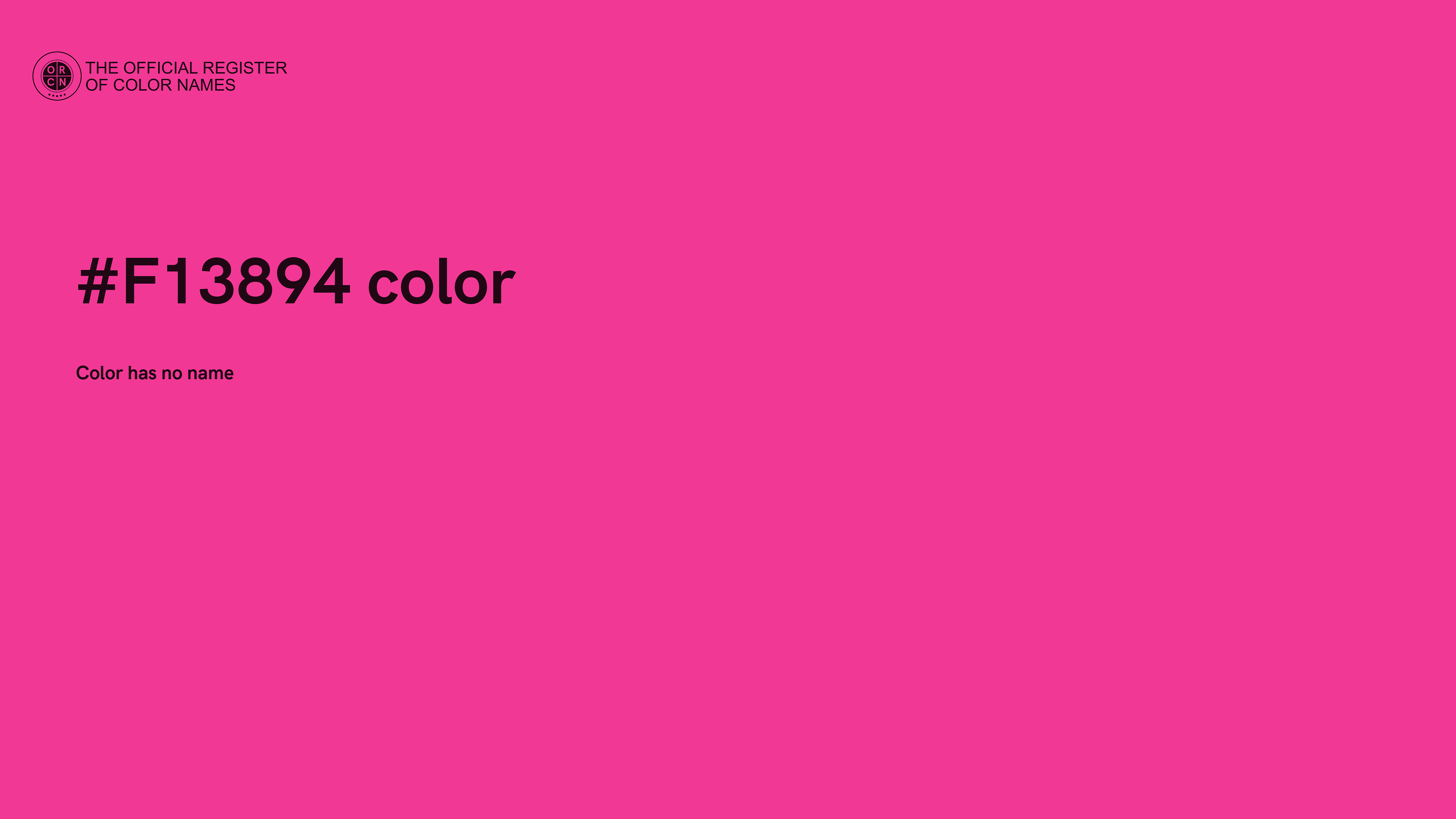 For printing in non digital world, #F13894 is represented in CMYK as 0 Cyan, 73 Magenta, 36 Yellow, and 5 Black (Key) (C:0 M:73 Y:36 K:5).