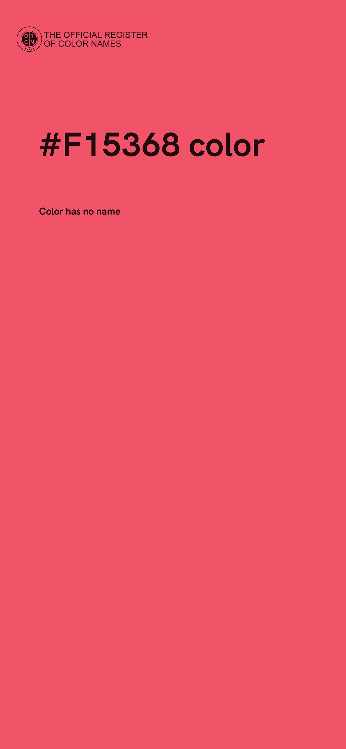 The digital color HEX #F15368 belongs to the Red Color Family featuring Full Saturation (Saturation Family) and Very Light (Brightness Family).