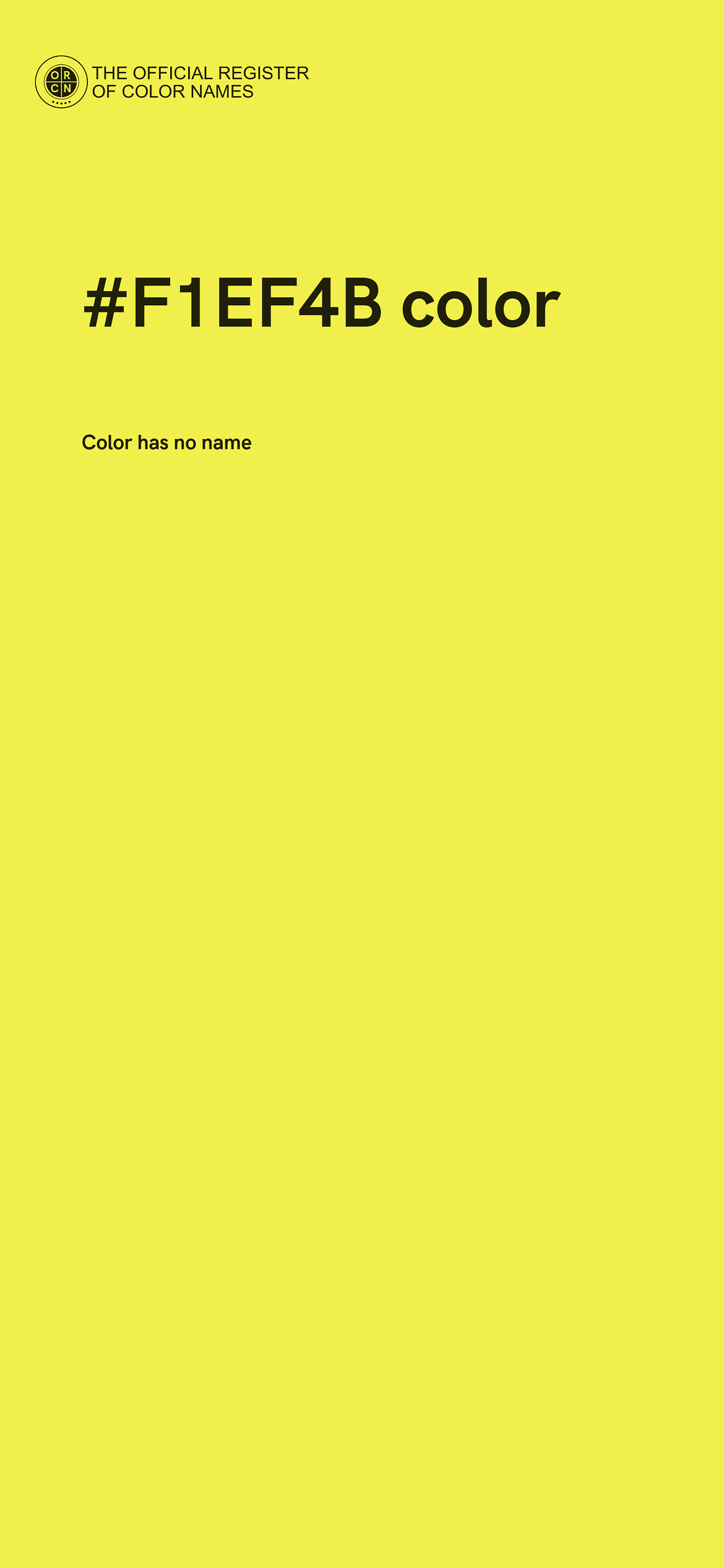 The digital color HEX #F1EF4B belongs to the Yellow Color Family featuring Full Saturation (Saturation Family) and Very Light (Brightness Family).