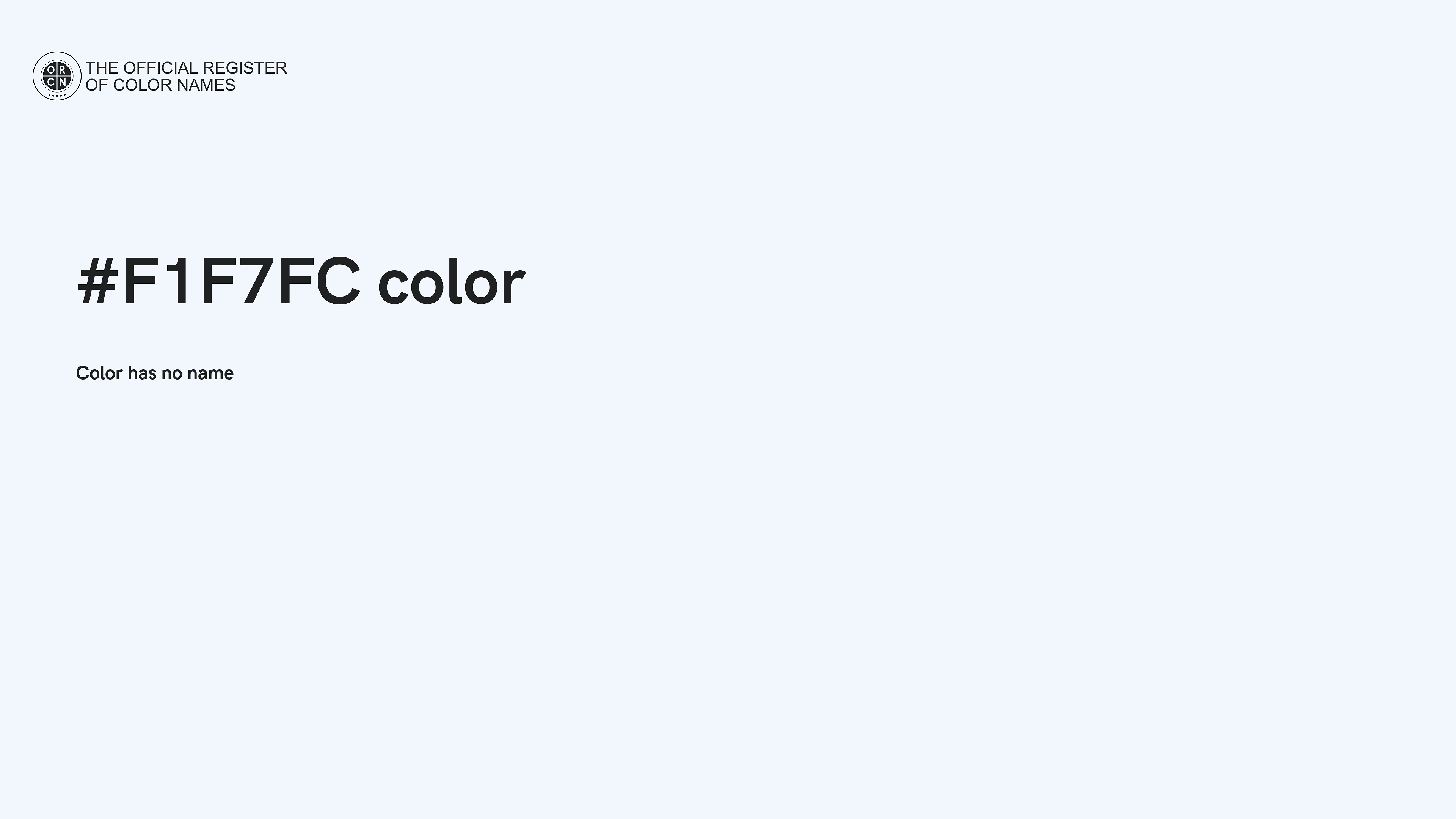 The digital color HEX #F1F7FC belongs to the Azure Color Family featuring High Saturation (Saturation Family) and Luminous (Brightness Family).