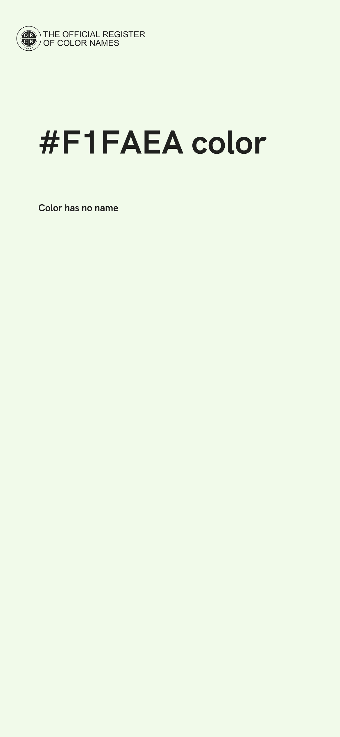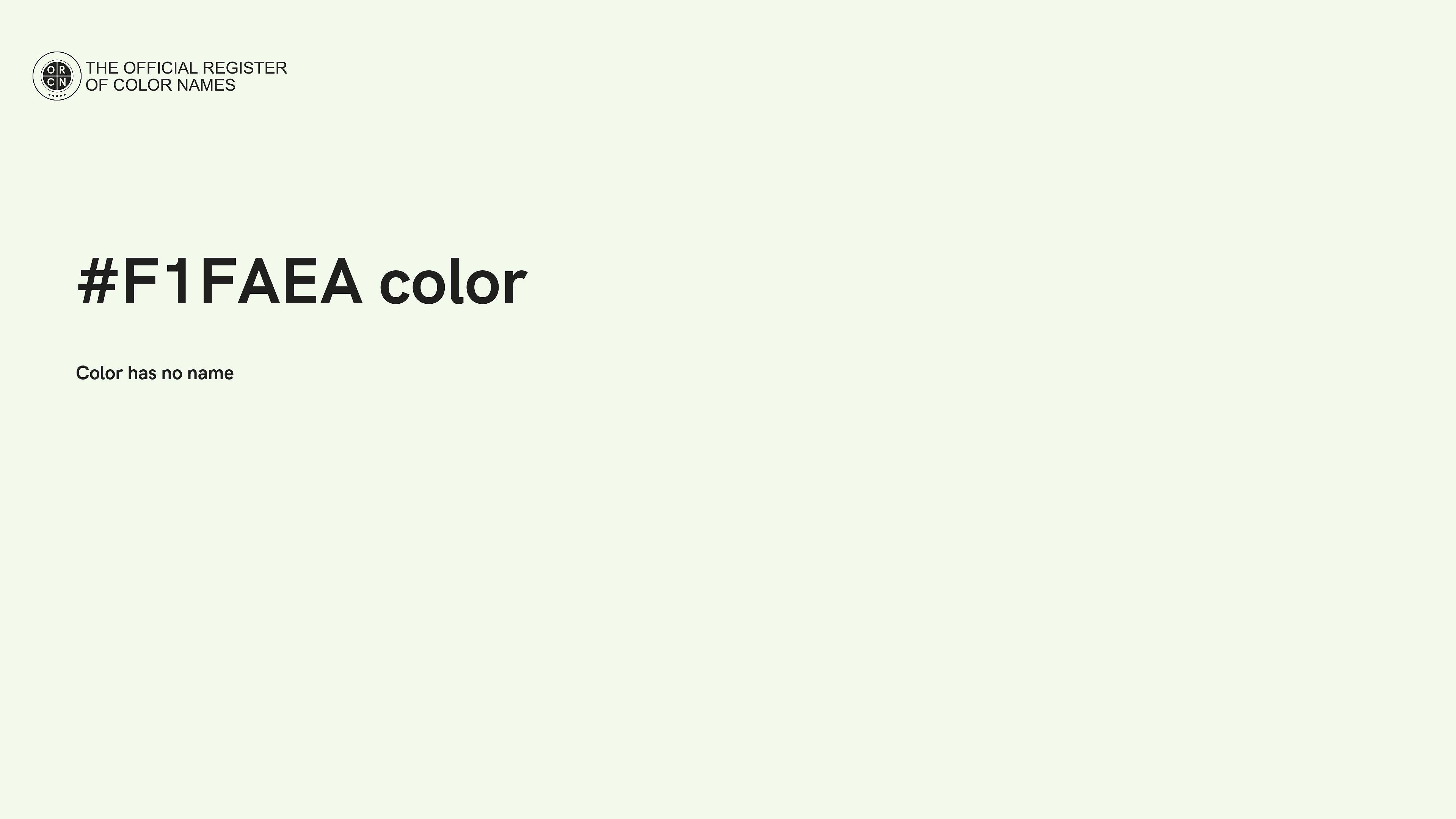 The digital color HEX #F1FAEA belongs to the Chartreuse Color Family featuring High Saturation (Saturation Family) and Luminous (Brightness Family).