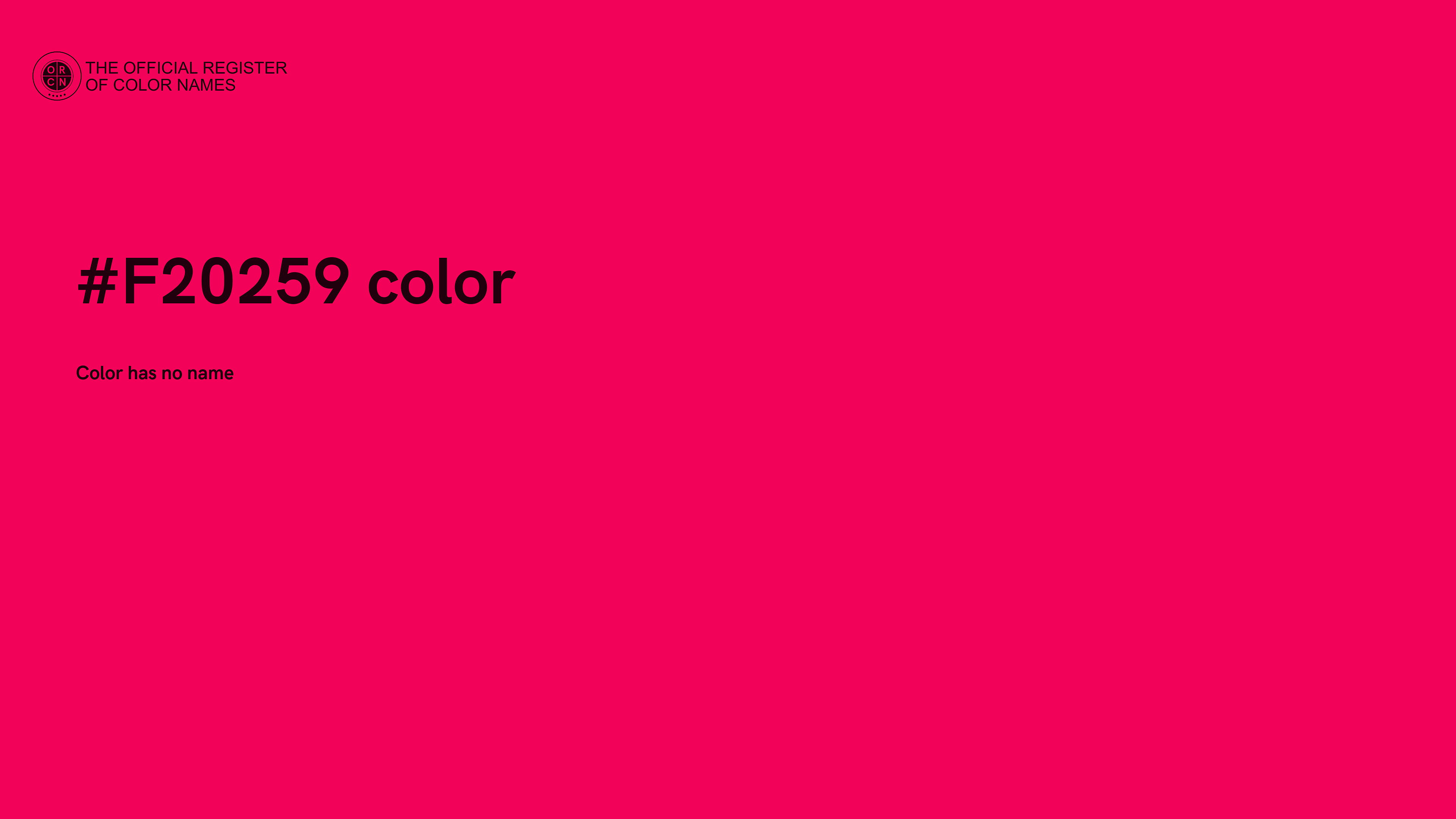 For printing in non digital world, #F20259 is represented in CMYK as 0 Cyan, 94 Magenta, 60 Yellow, and 5 Black (Key) (C:0 M:94 Y:60 K:5).