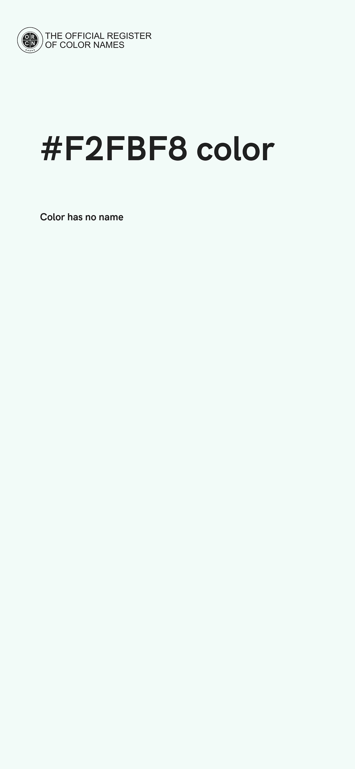 For printing in non digital world, #F2FBF8 is represented in CMYK as 4 Cyan, 0 Magenta, 1 Yellow, and 2 Black (Key) (C:4 M:0 Y:1 K:2).