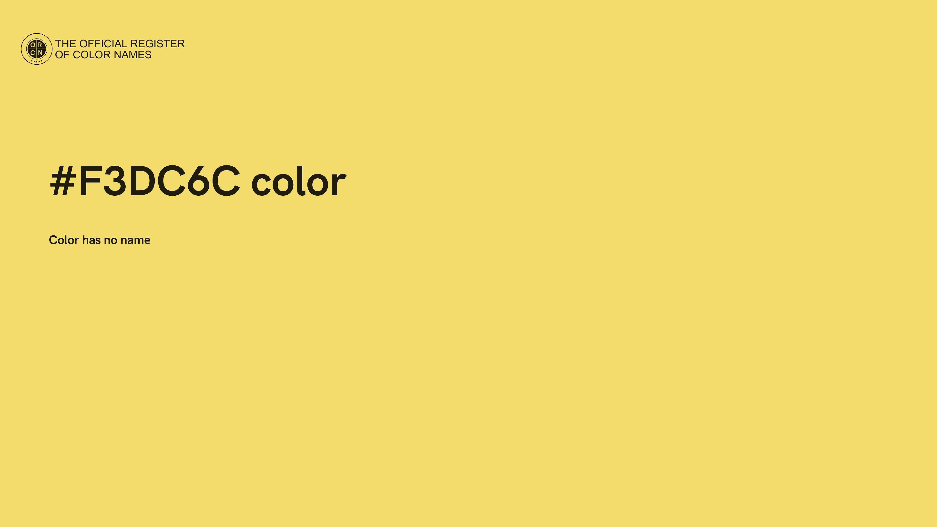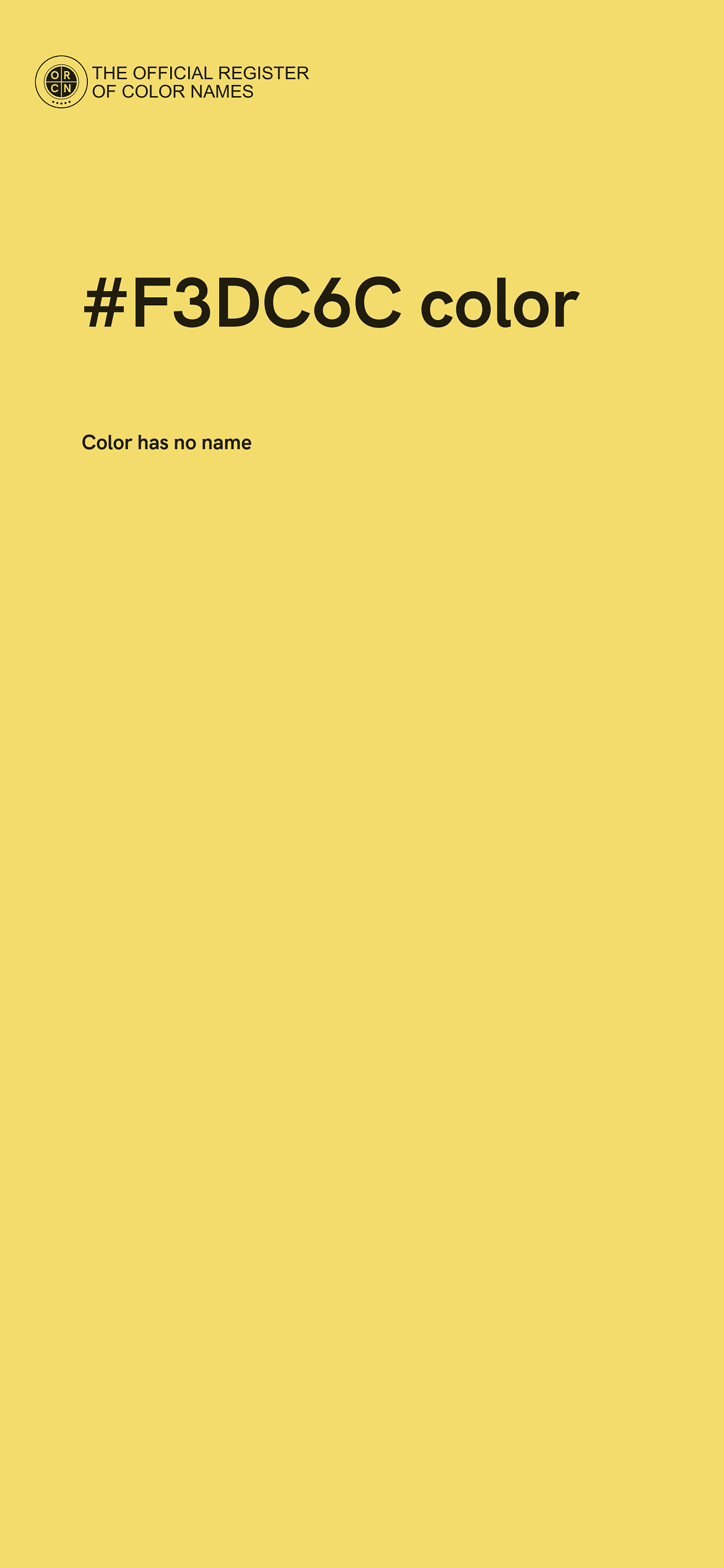 For printing in non digital world, #F3DC6C is represented in CMYK as 0 Cyan, 9 Magenta, 53 Yellow, and 5 Black (Key) (C:0 M:9 Y:53 K:5).