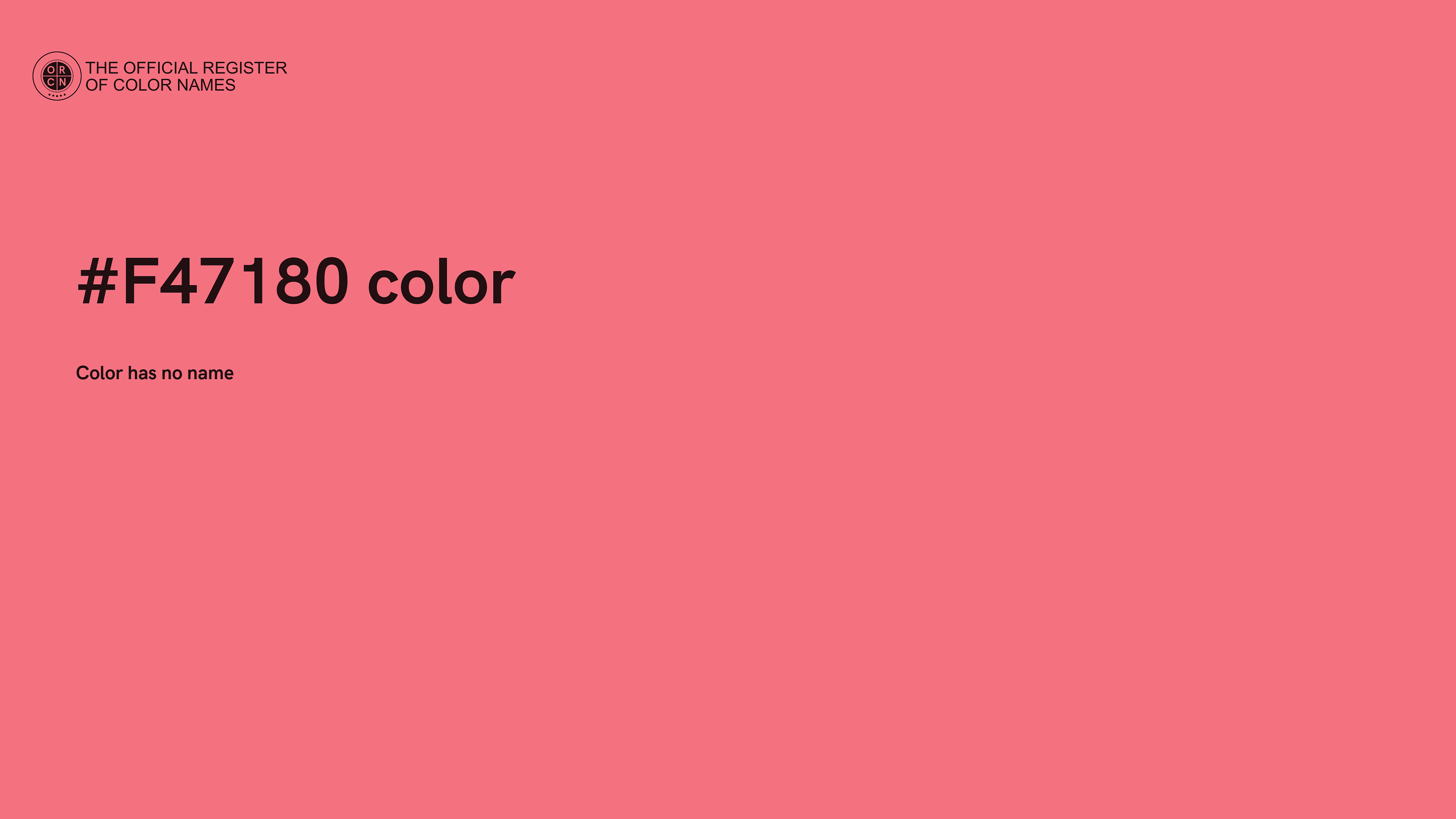 The digital color HEX #F47180 belongs to the Red Color Family featuring Full Saturation (Saturation Family) and Very Light (Brightness Family).