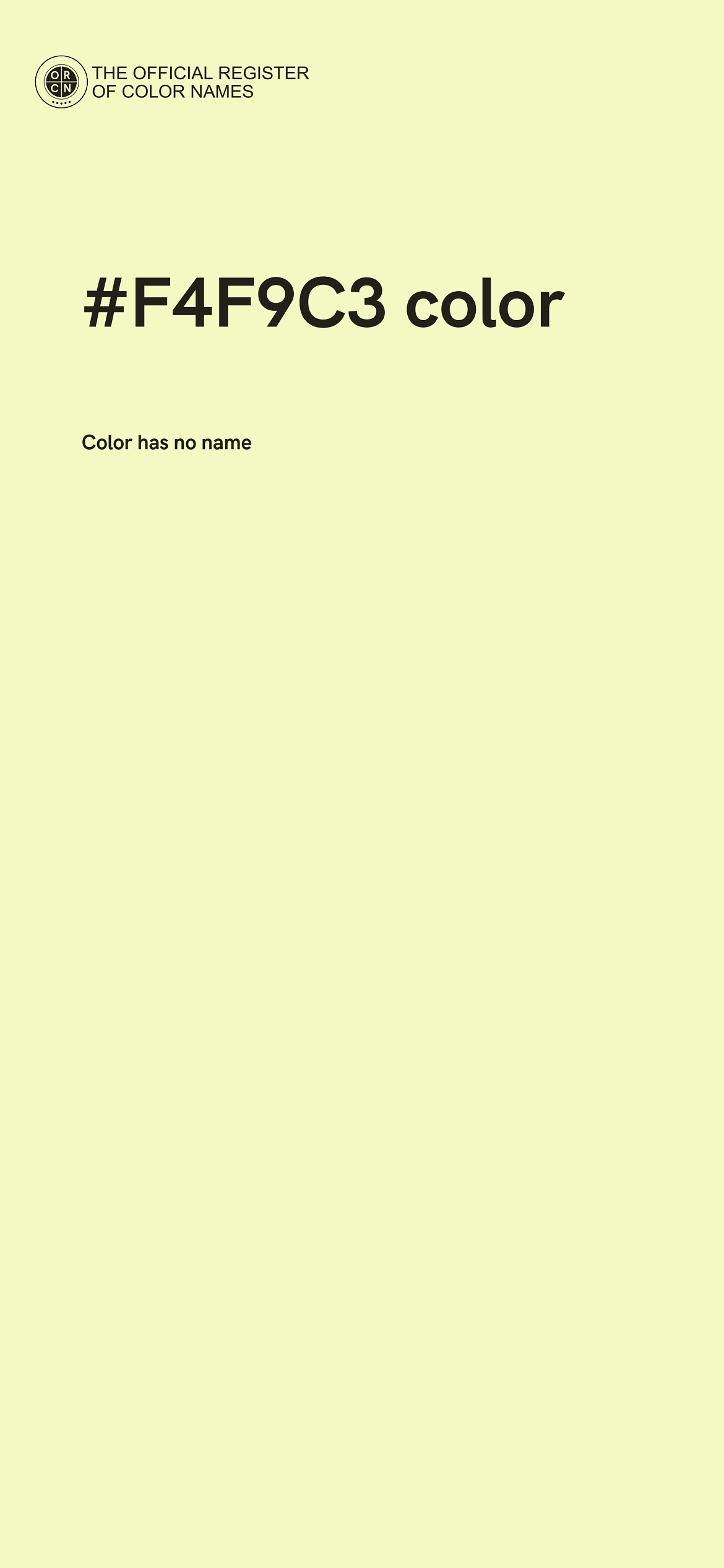 For printing in non digital world, #F4F9C3 is represented in CMYK as 2 Cyan, 0 Magenta, 21 Yellow, and 2 Black (Key) (C:2 M:0 Y:21 K:2).