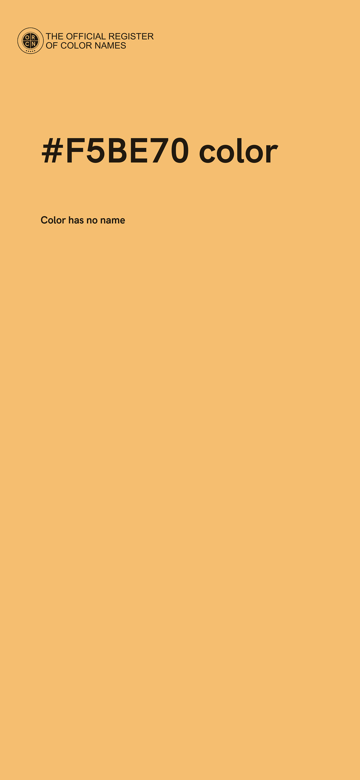 The digital color HEX #F5BE70 belongs to the Orange Color Family featuring Full Saturation (Saturation Family) and Very Light (Brightness Family).