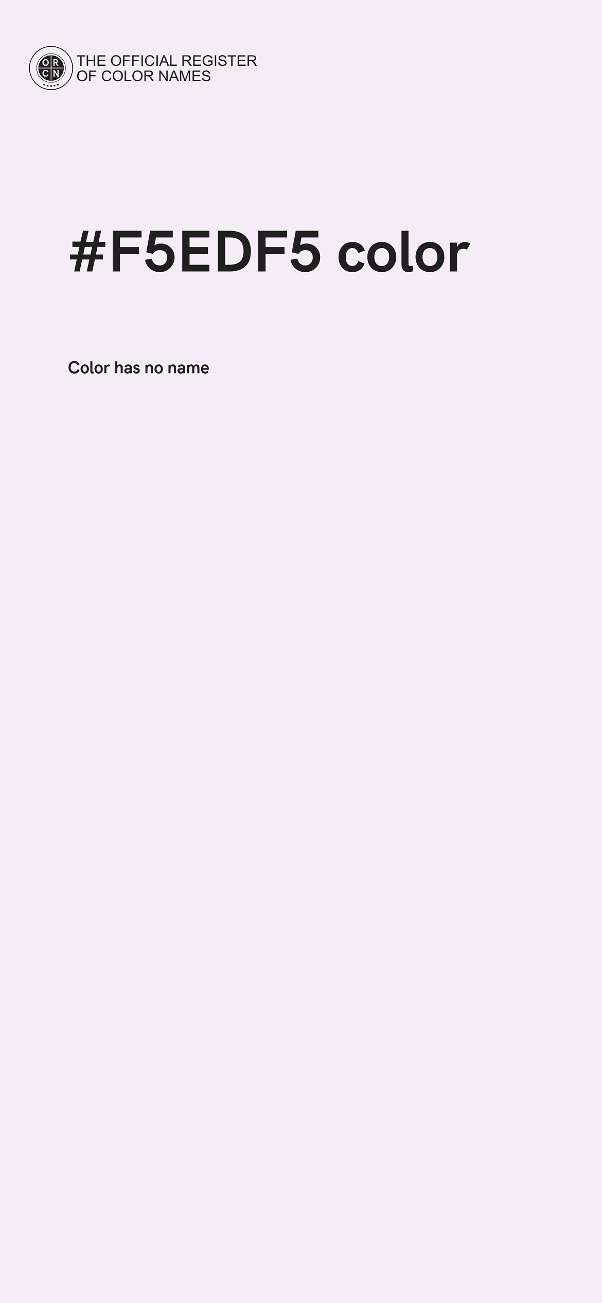 The digital color HEX #F5EDF5 belongs to the Magenta Color Family featuring Mild Saturation (Saturation Family) and Luminous (Brightness Family).