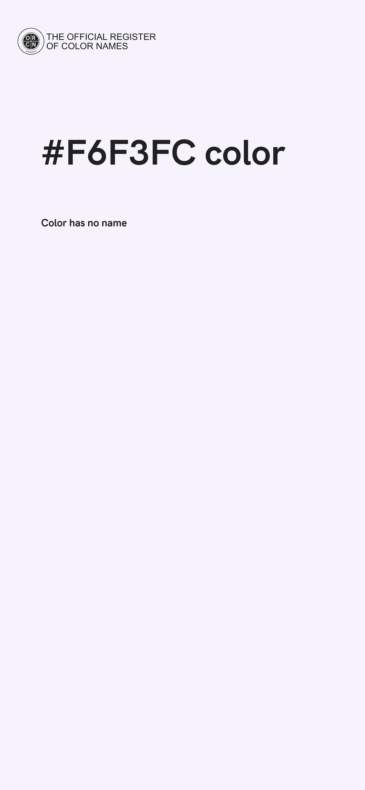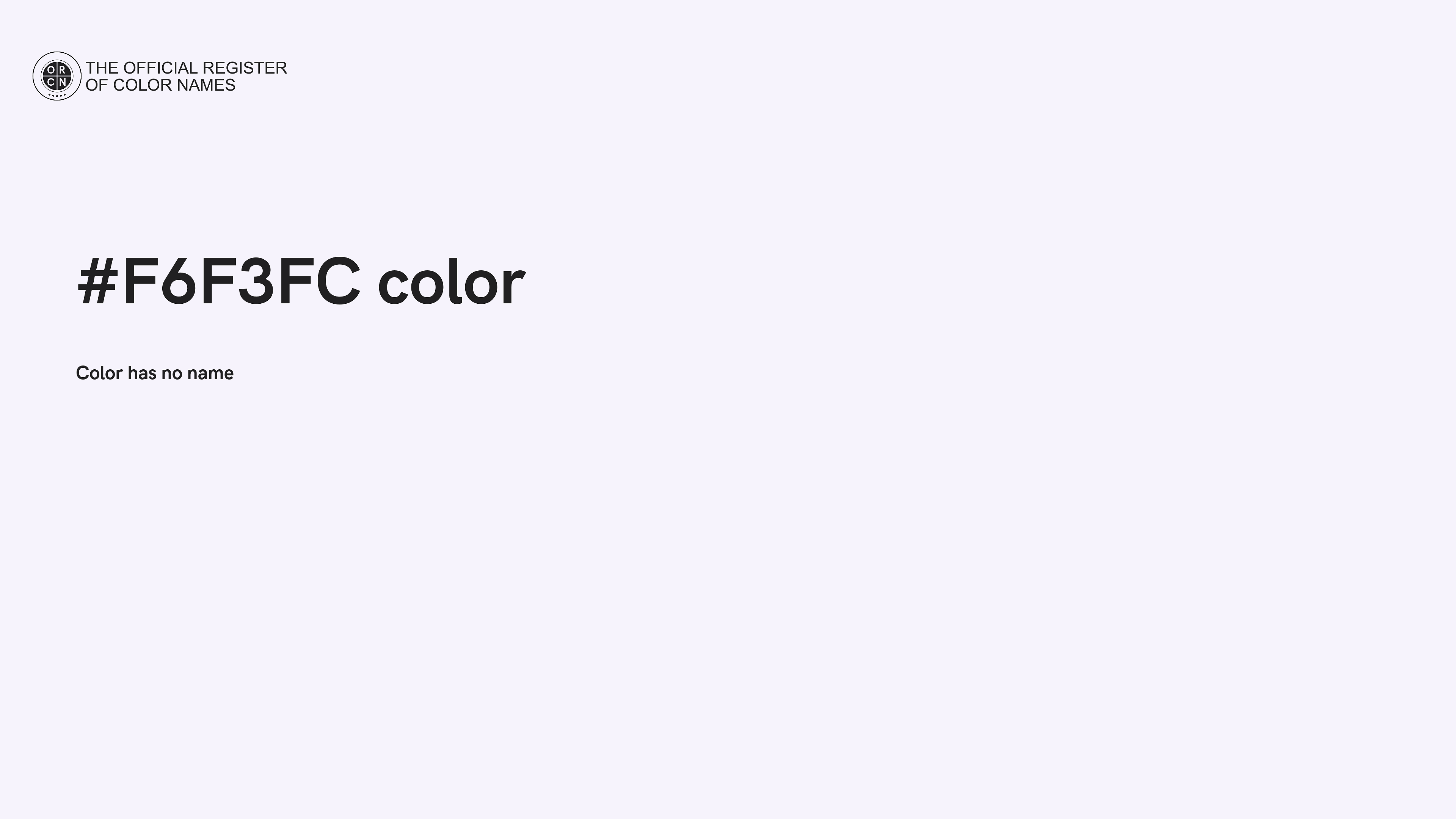 The digital color HEX #F6F3FC belongs to the Violet Color Family featuring High Saturation (Saturation Family) and Luminous (Brightness Family).
