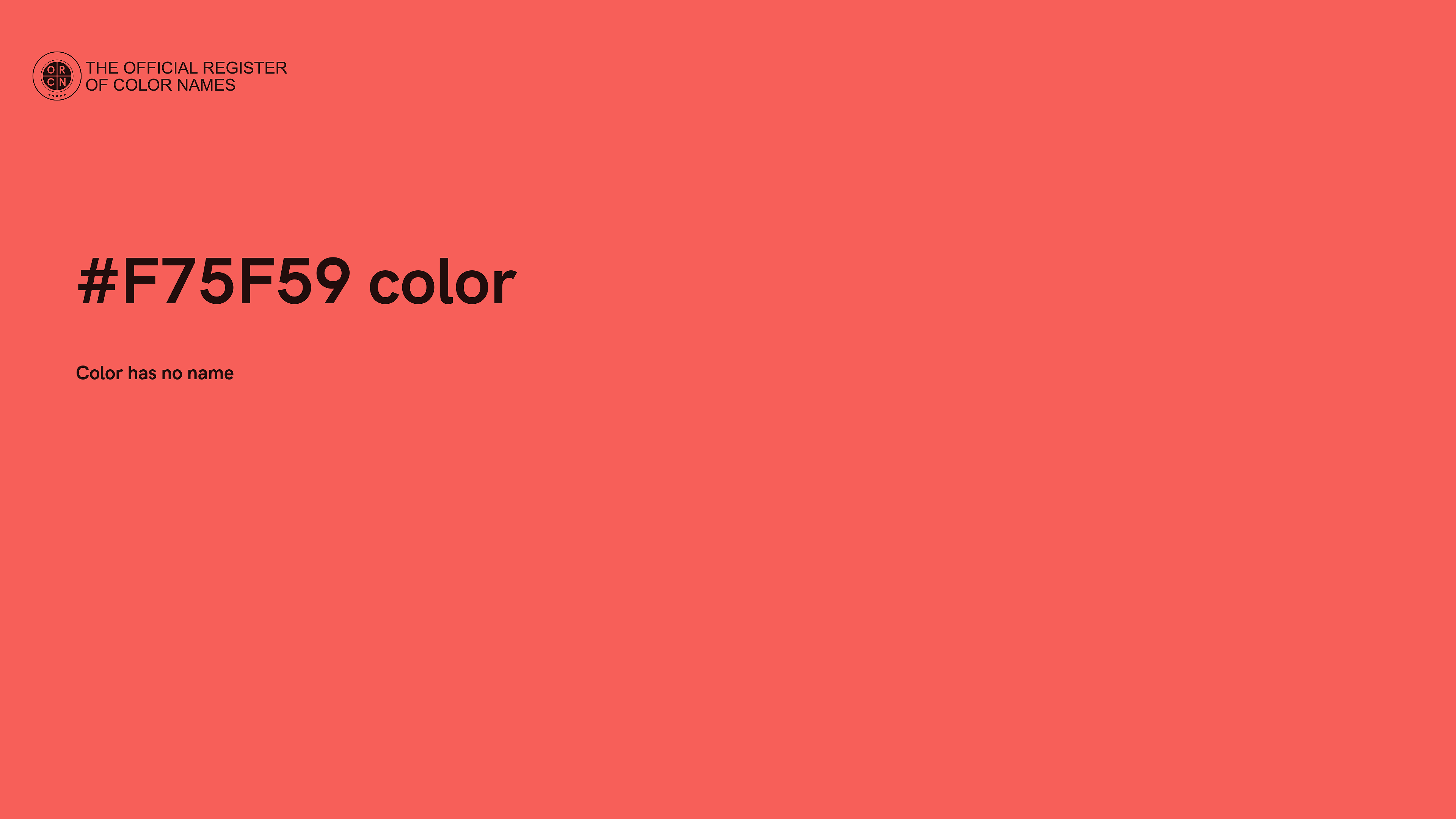 The digital color HEX #F75F59 belongs to the Red Color Family featuring Full Saturation (Saturation Family) and Very Light (Brightness Family).