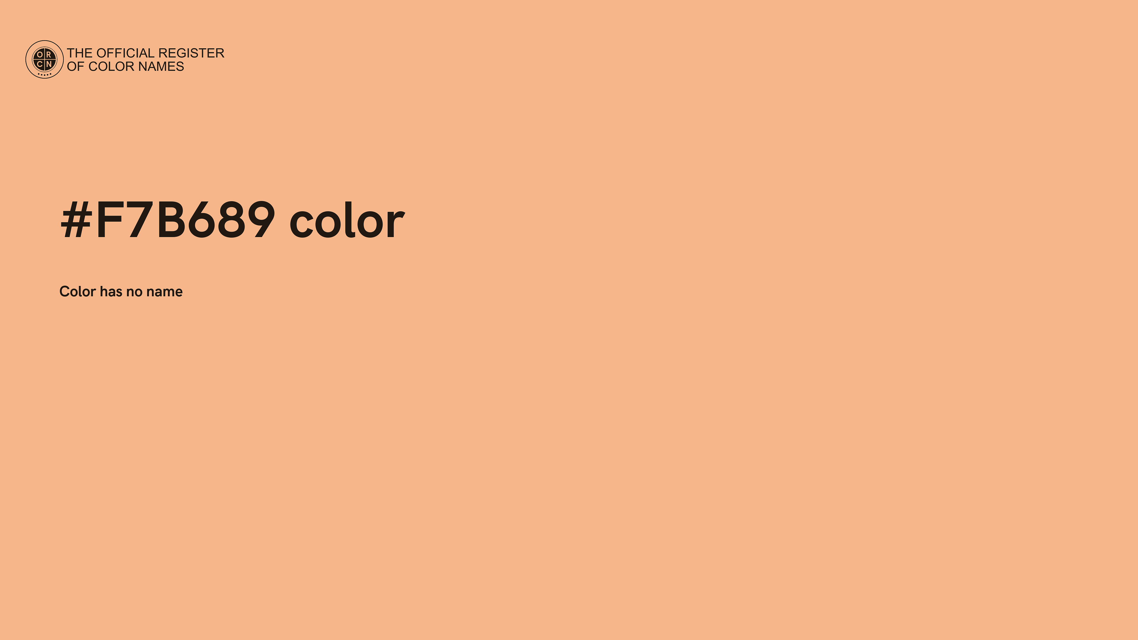 The digital color HEX #F7B689 belongs to the Orange Color Family featuring Full Saturation (Saturation Family) and Very Light (Brightness Family).