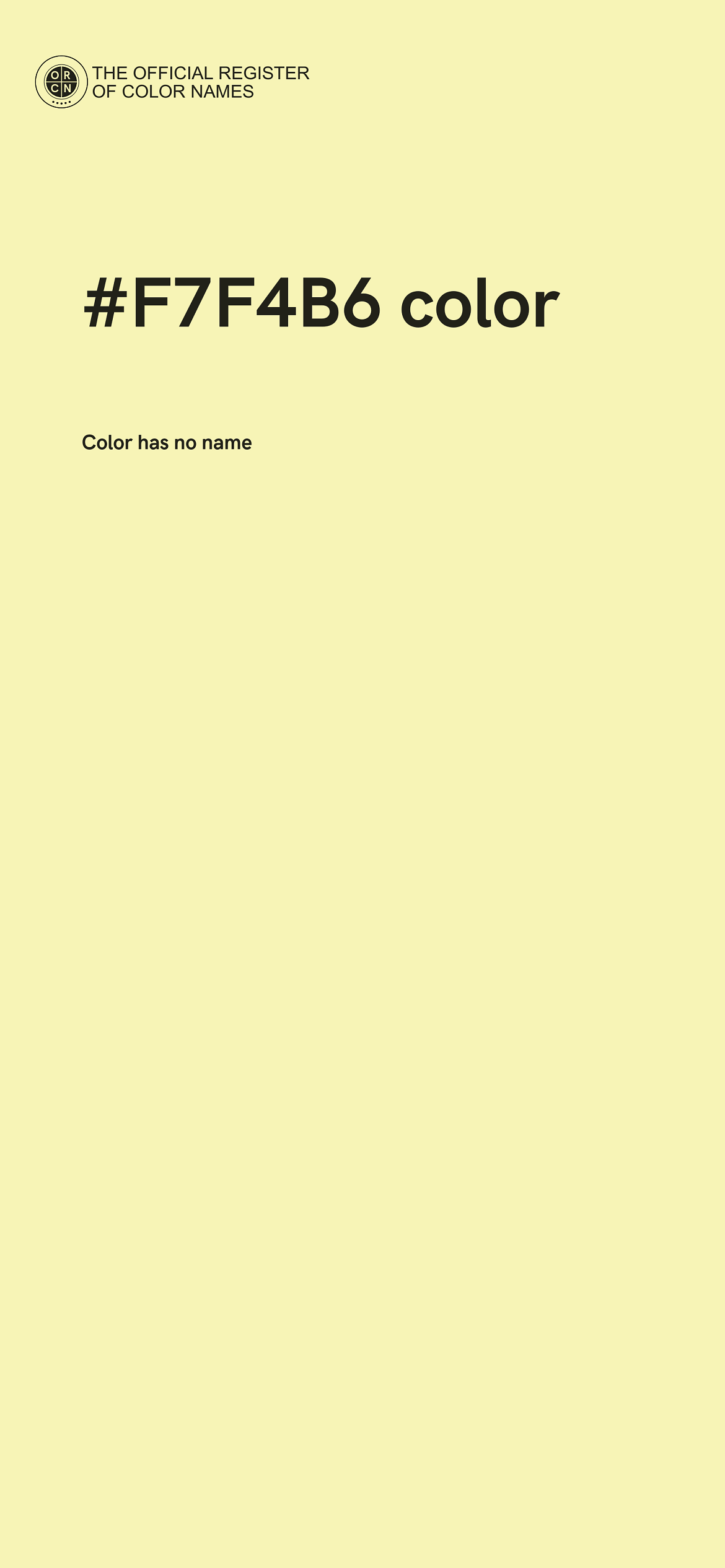 For printing in non digital world, #F7F4B6 is represented in CMYK as 0 Cyan, 1 Magenta, 25 Yellow, and 3 Black (Key) (C:0 M:1 Y:25 K:3).