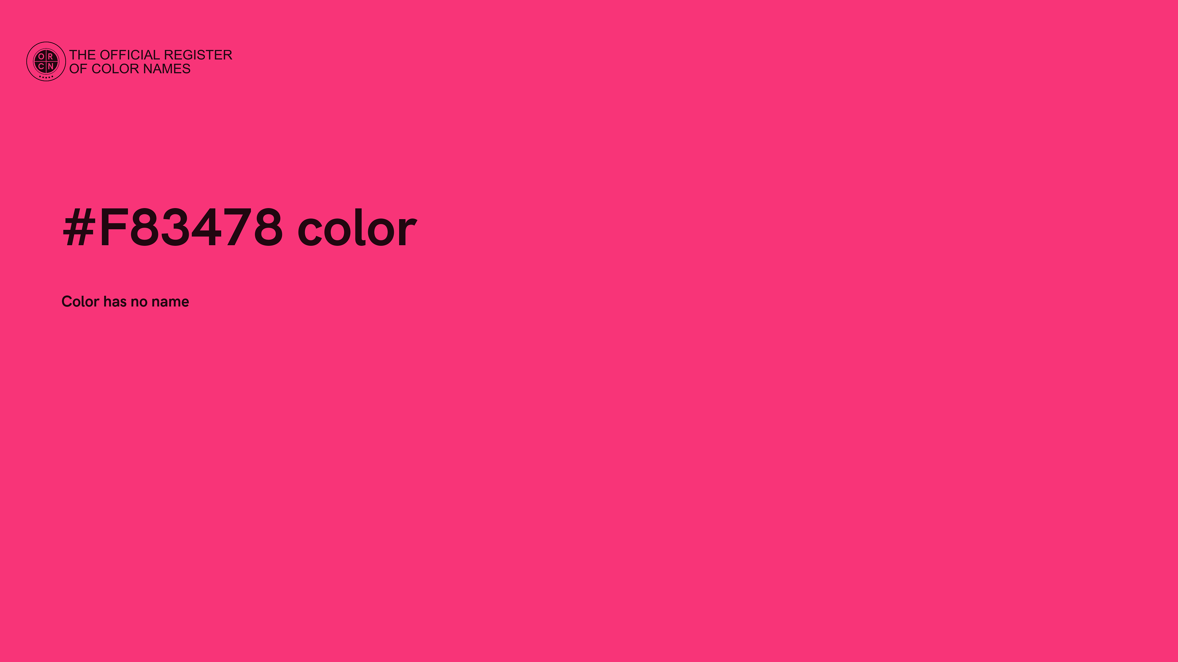 For printing in non digital world, #F83478 is represented in CMYK as 0 Cyan, 77 Magenta, 50 Yellow, and 3 Black (Key) (C:0 M:77 Y:50 K:3).