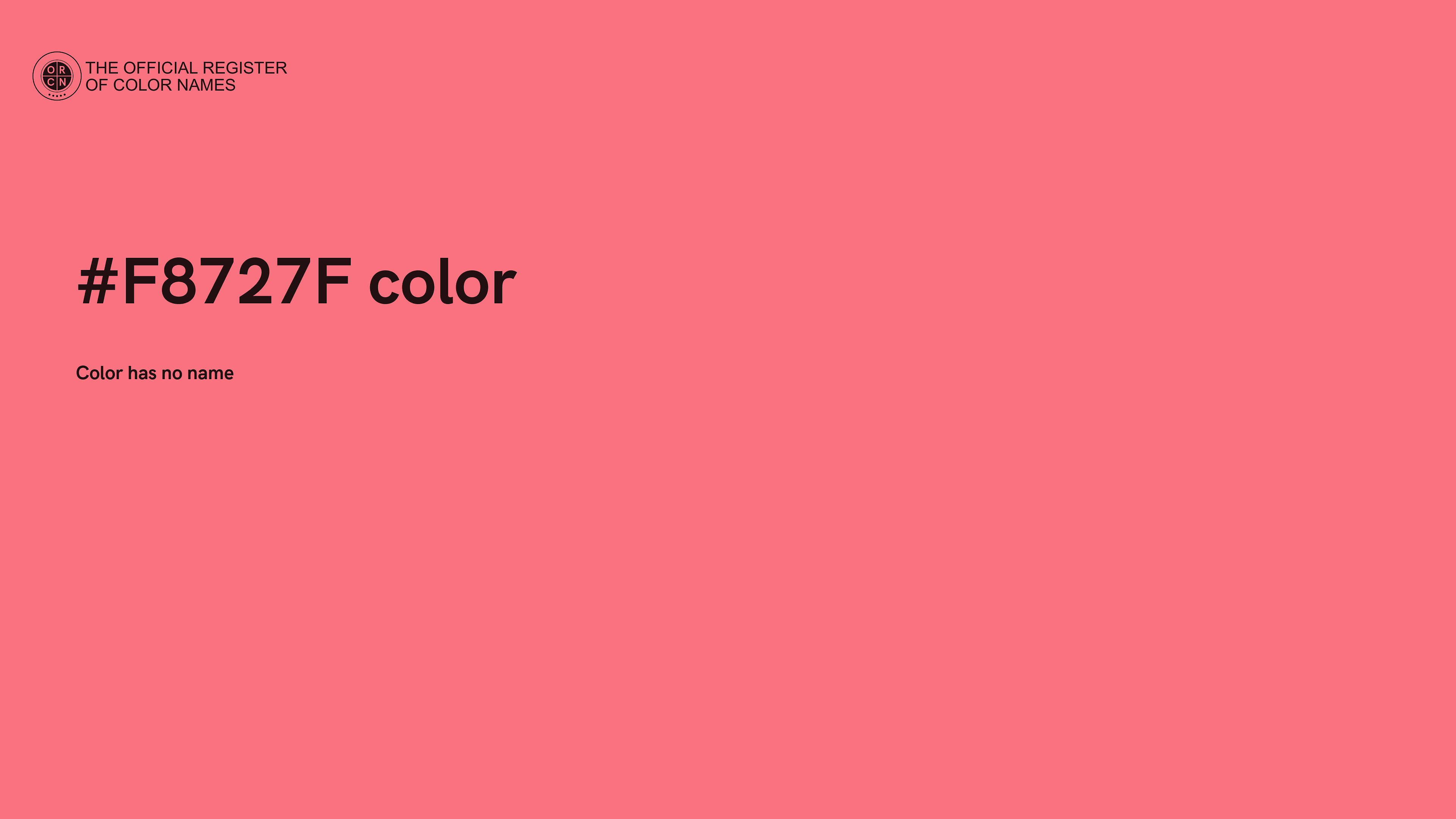 The digital color HEX #F8727F belongs to the Red Color Family featuring Full Saturation (Saturation Family) and Very Light (Brightness Family).