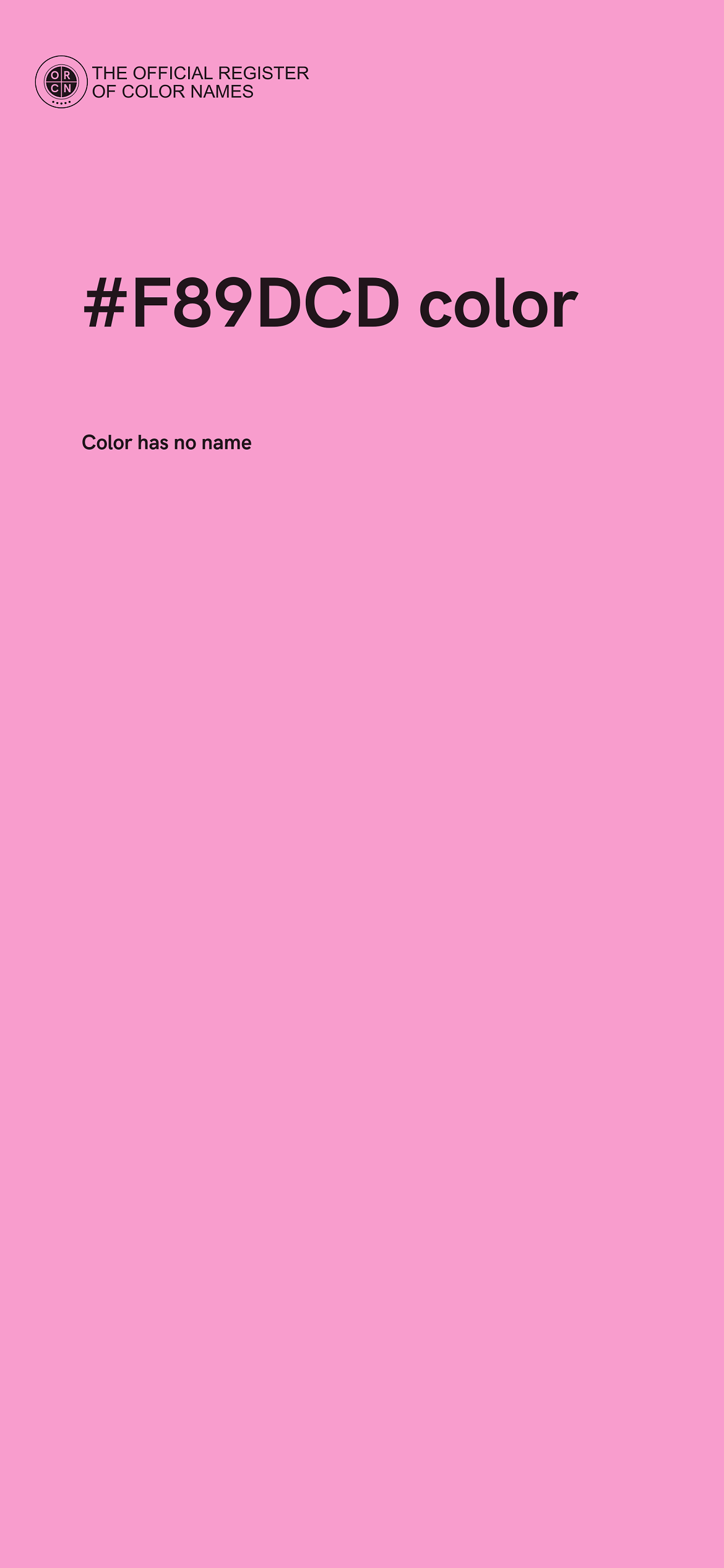 The digital color HEX #F89DCD belongs to the Rose Color Family featuring Full Saturation (Saturation Family) and Very Light (Brightness Family).