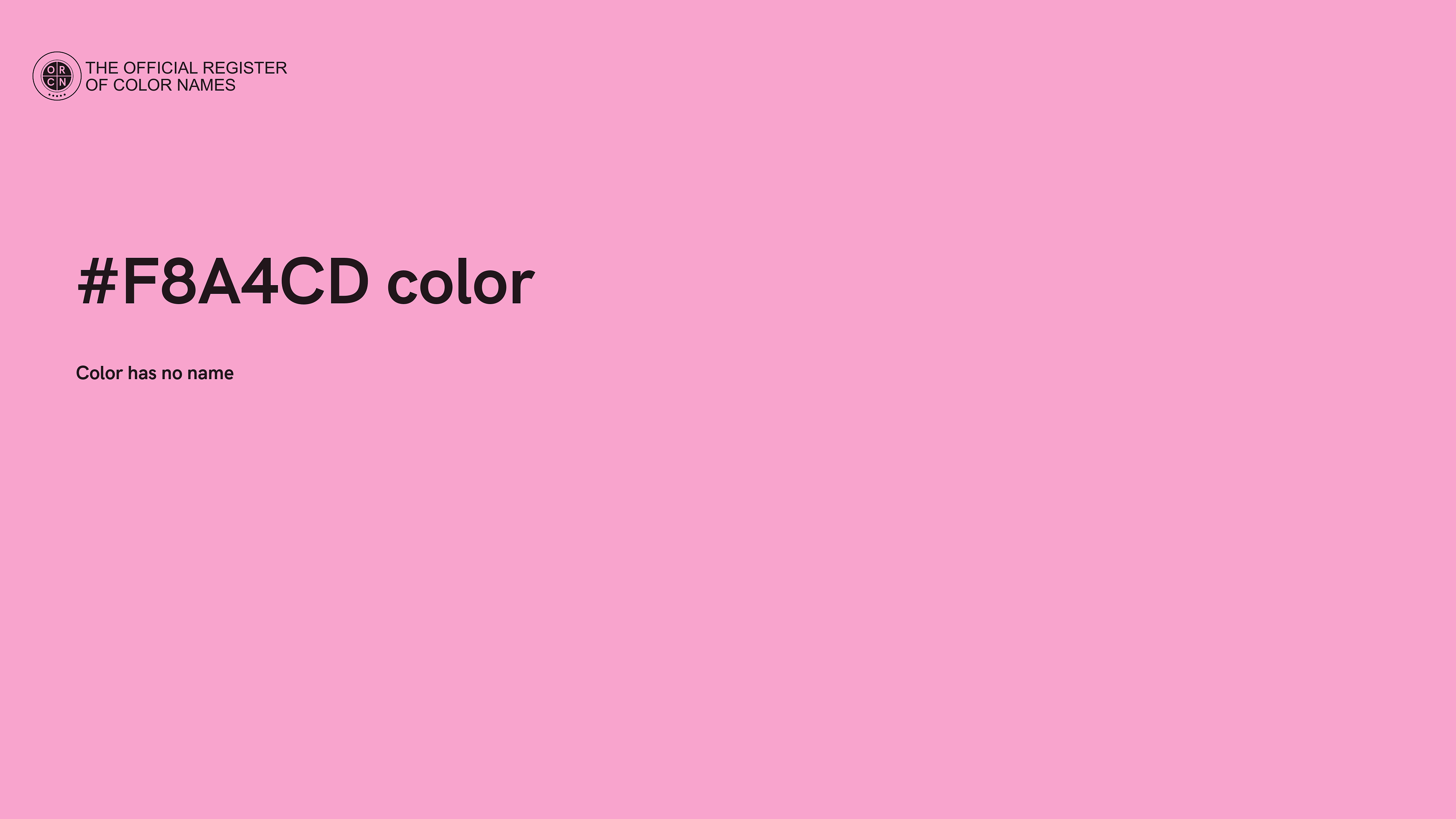 For printing in non digital world, #F8A4CD is represented in CMYK as 0 Cyan, 33 Magenta, 17 Yellow, and 3 Black (Key) (C:0 M:33 Y:17 K:3).
