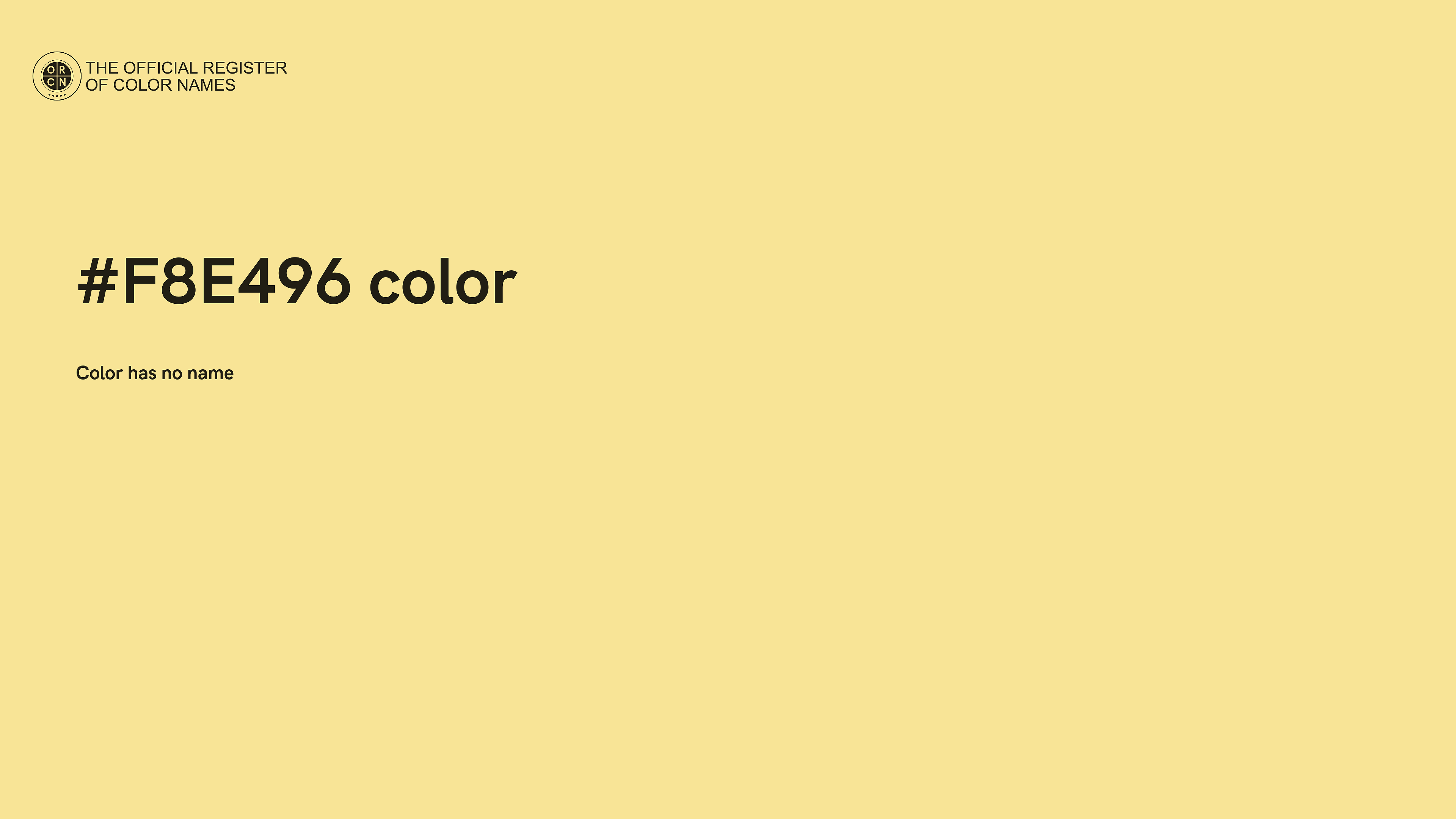 The digital color HEX #F8E496 belongs to the Yellow Color Family featuring Full Saturation (Saturation Family) and Very Light (Brightness Family).