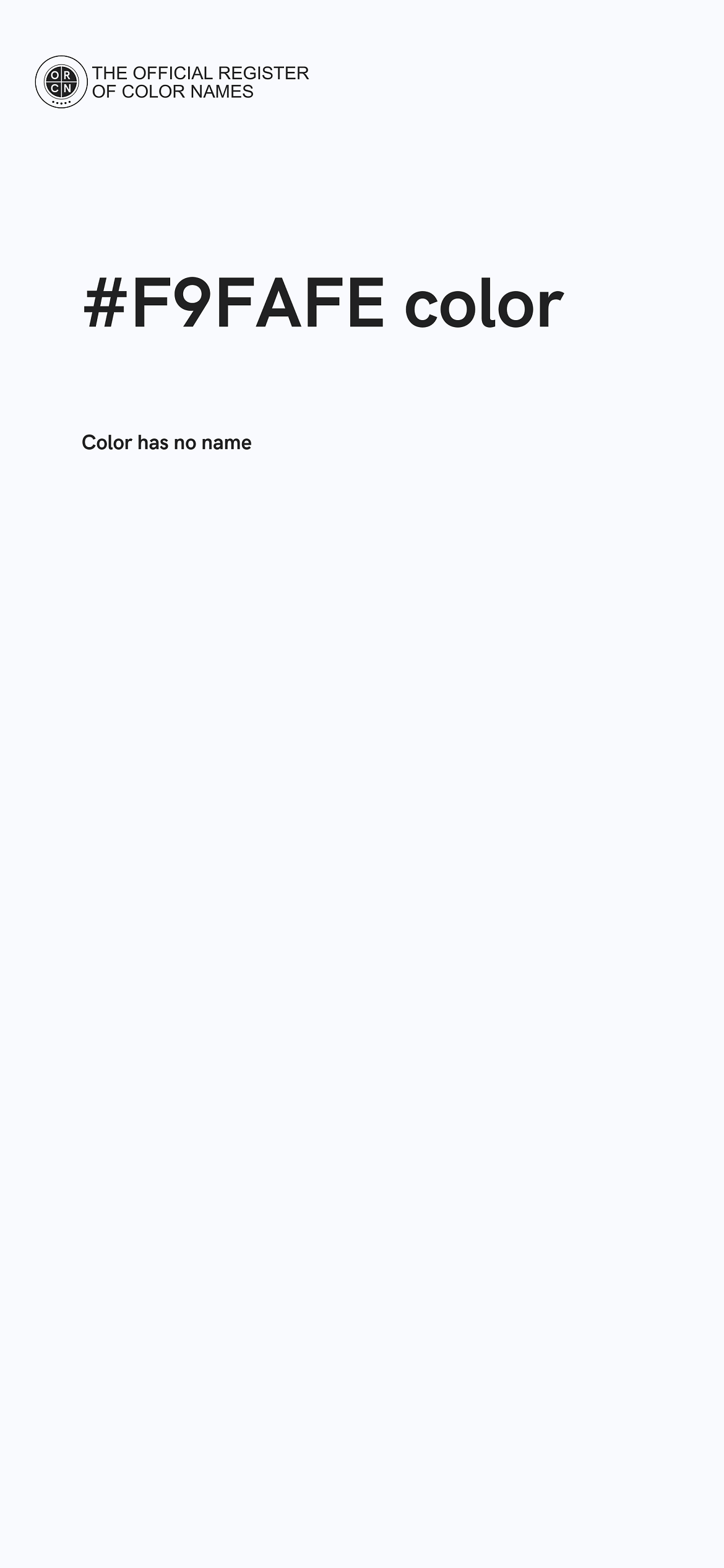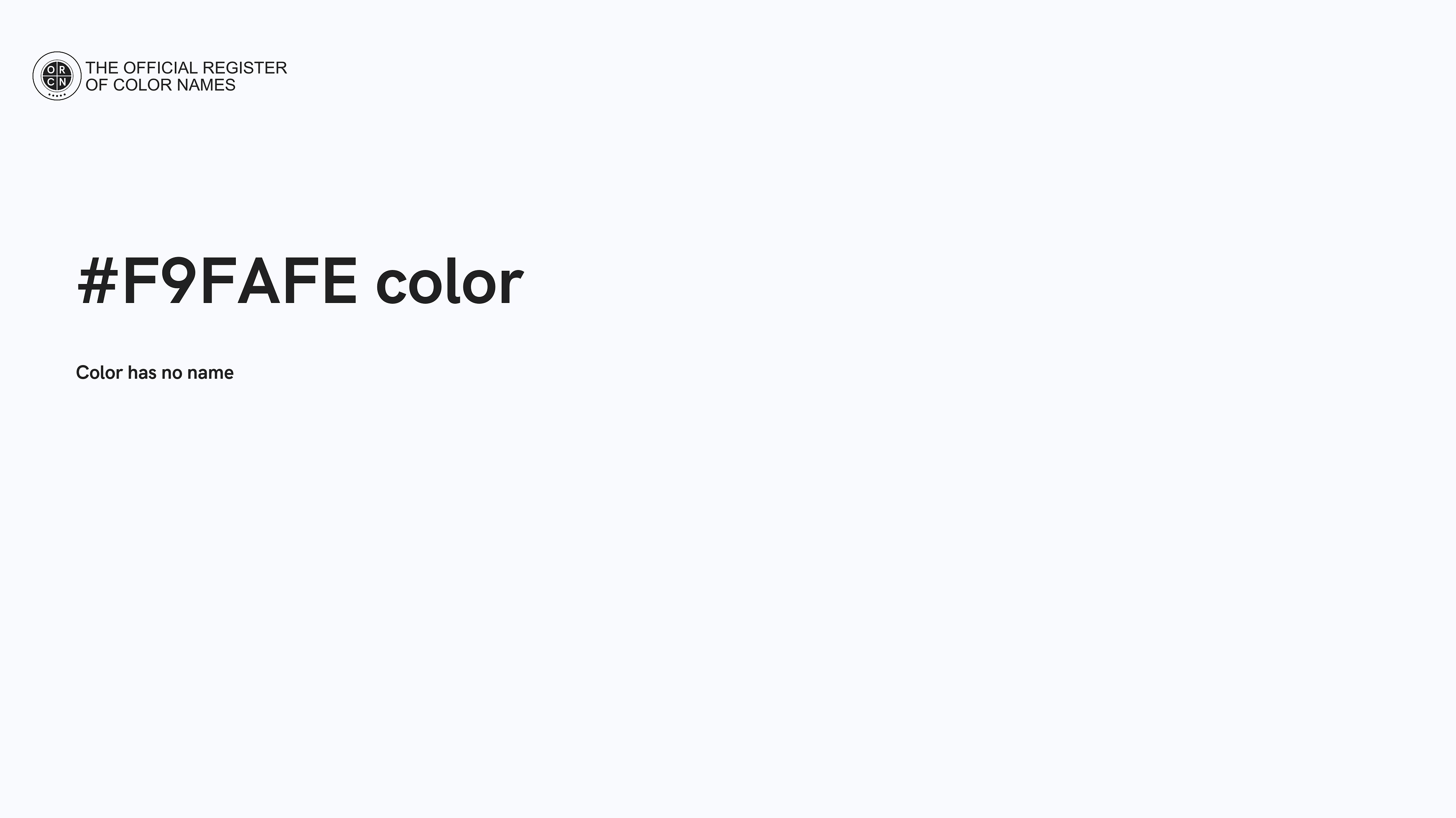 The digital color HEX #F9FAFE belongs to the Blue Color Family featuring High Saturation (Saturation Family) and Luminous (Brightness Family).