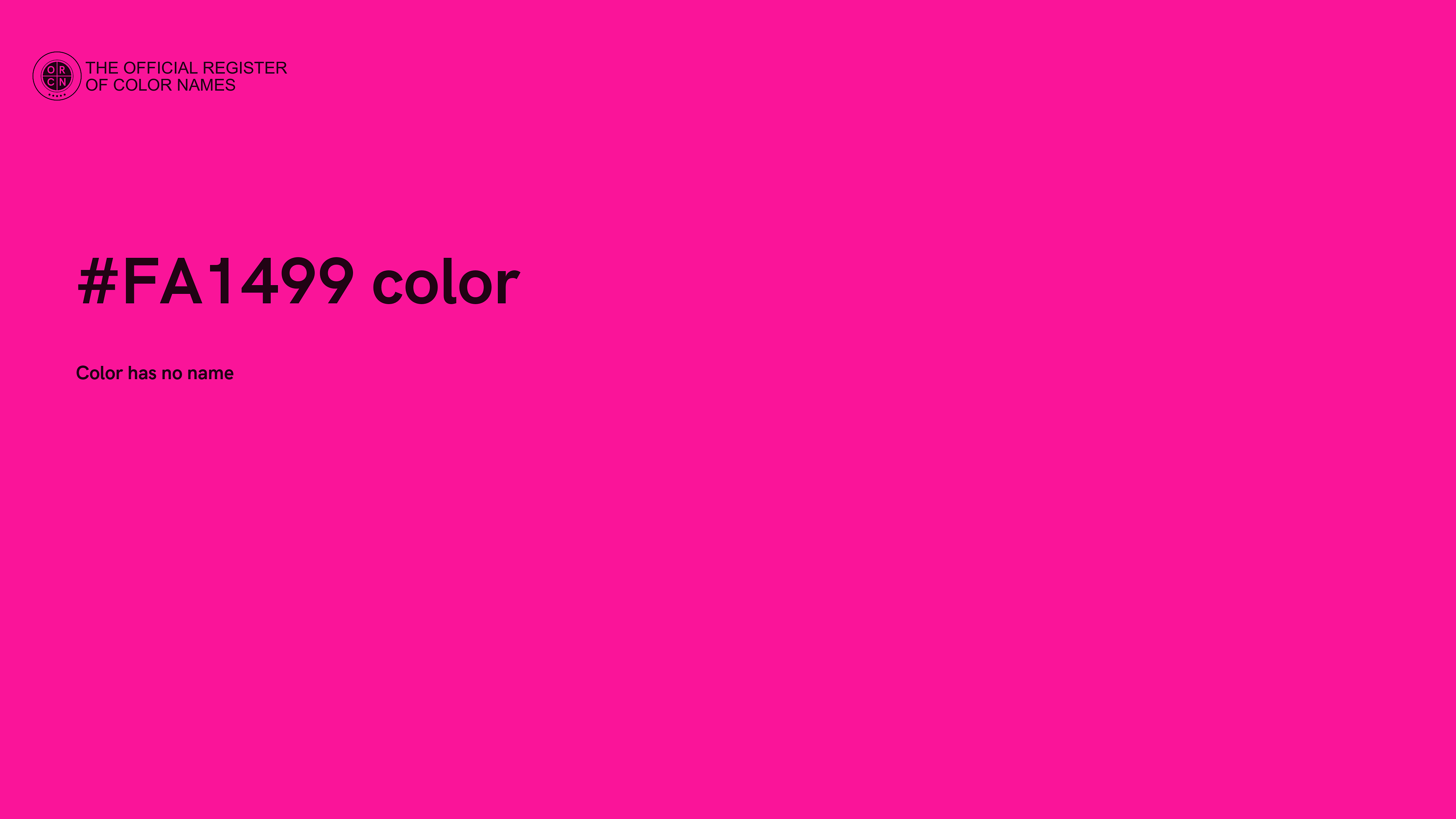 The digital color HEX #FA1499 belongs to the Rose Color Family featuring Full Saturation (Saturation Family) and Light (Brightness Family).