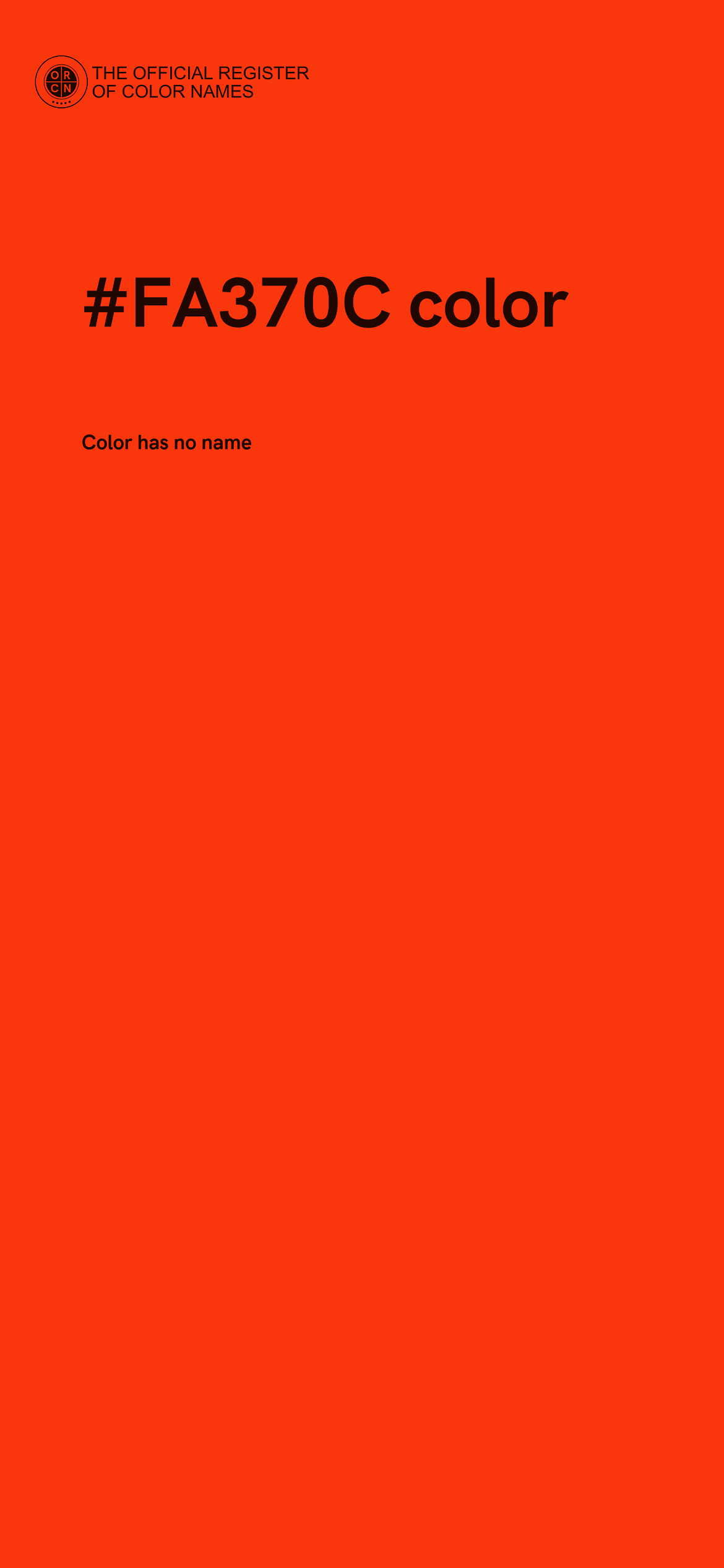 The digital color HEX #FA370C belongs to the Red Color Family featuring Full Saturation (Saturation Family) and Light (Brightness Family).