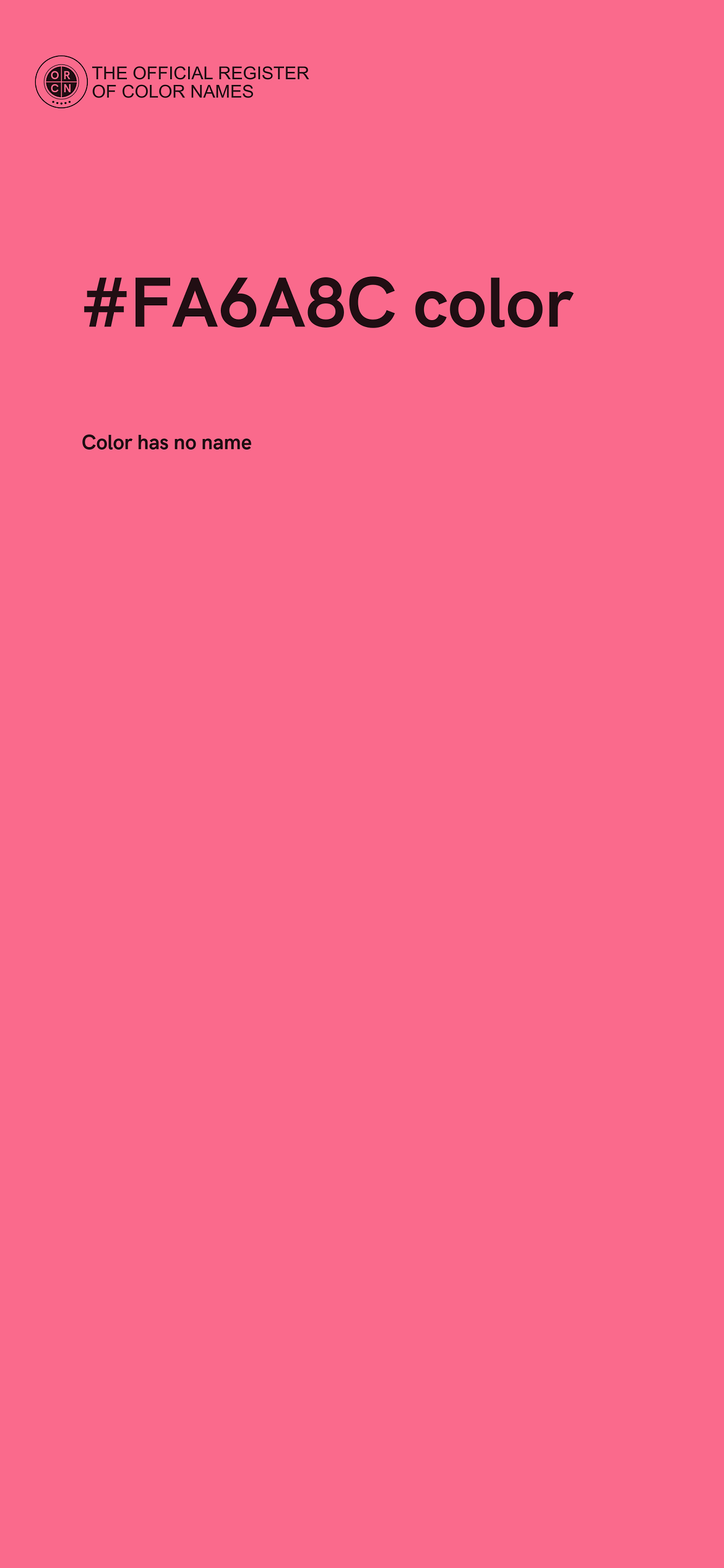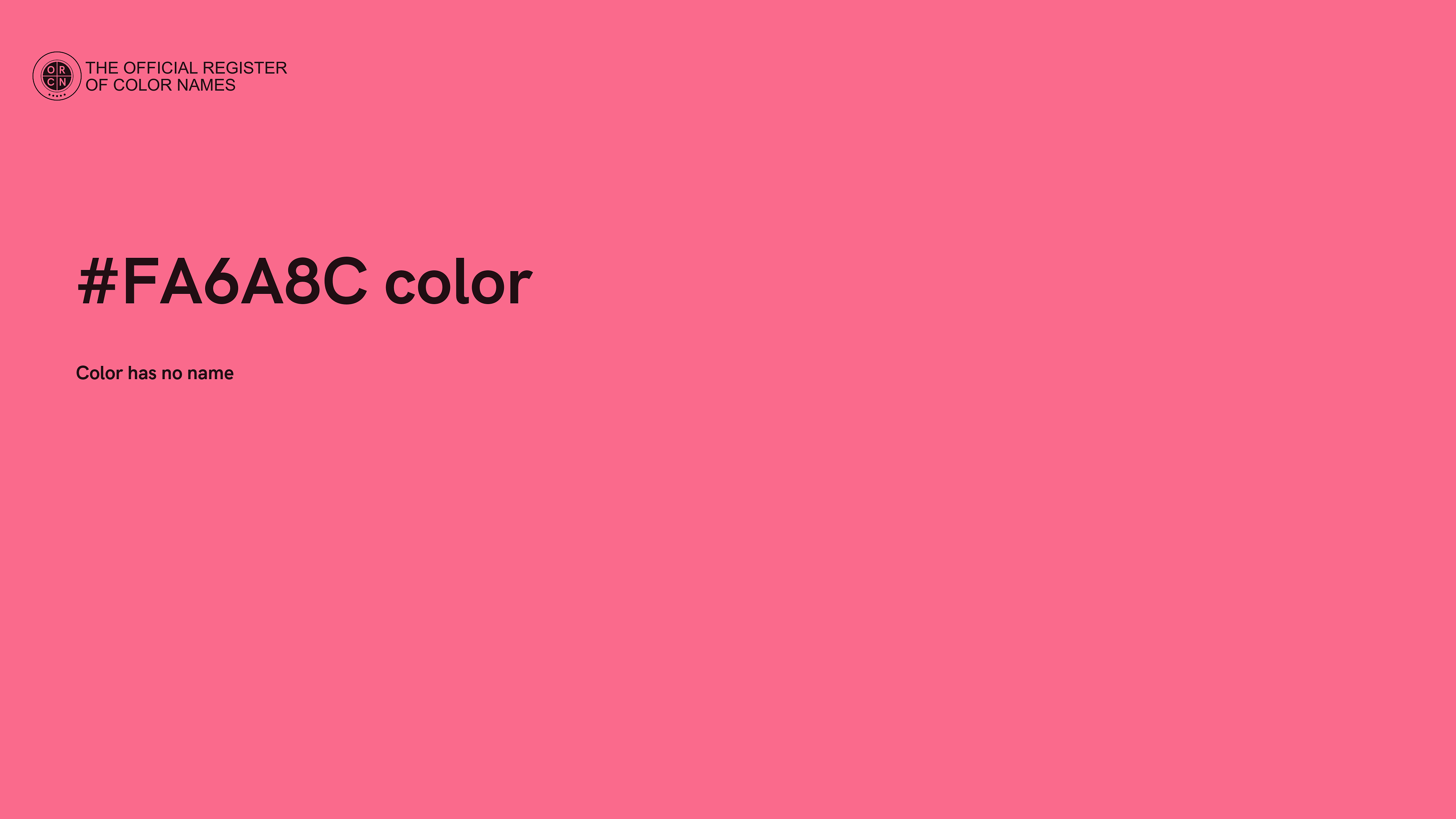The digital color HEX #FA6A8C belongs to the Red Color Family featuring Full Saturation (Saturation Family) and Very Light (Brightness Family).
