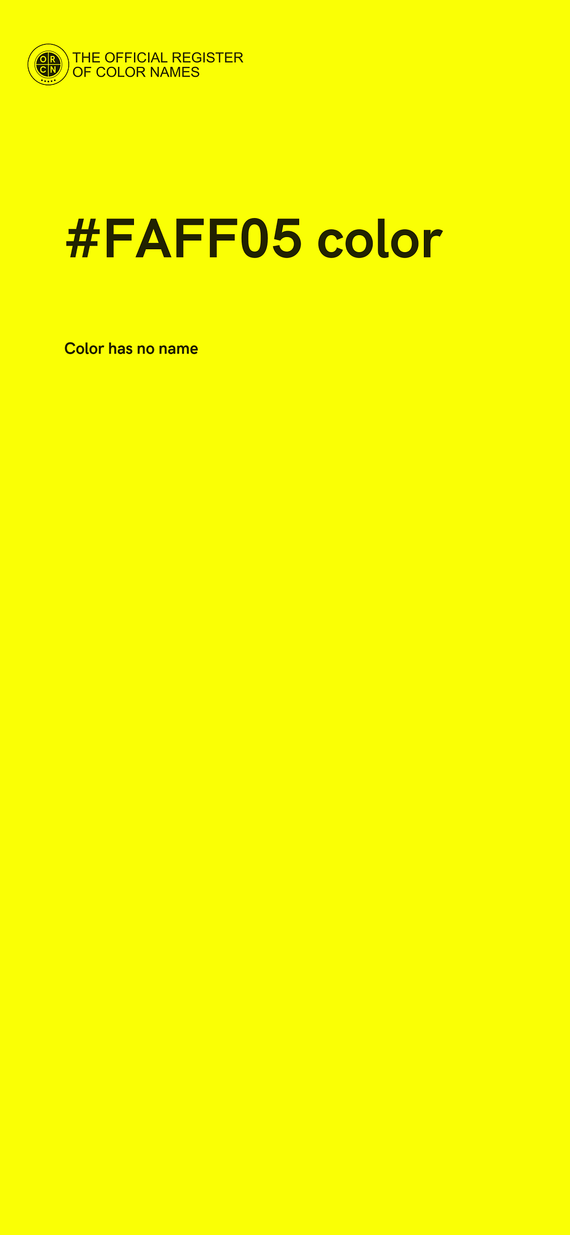 For printing in non digital world, #FAFF05 is represented in CMYK as 2 Cyan, 0 Magenta, 98 Yellow, and 0 Black (Key) (C:2 M:0 Y:98 K:0).