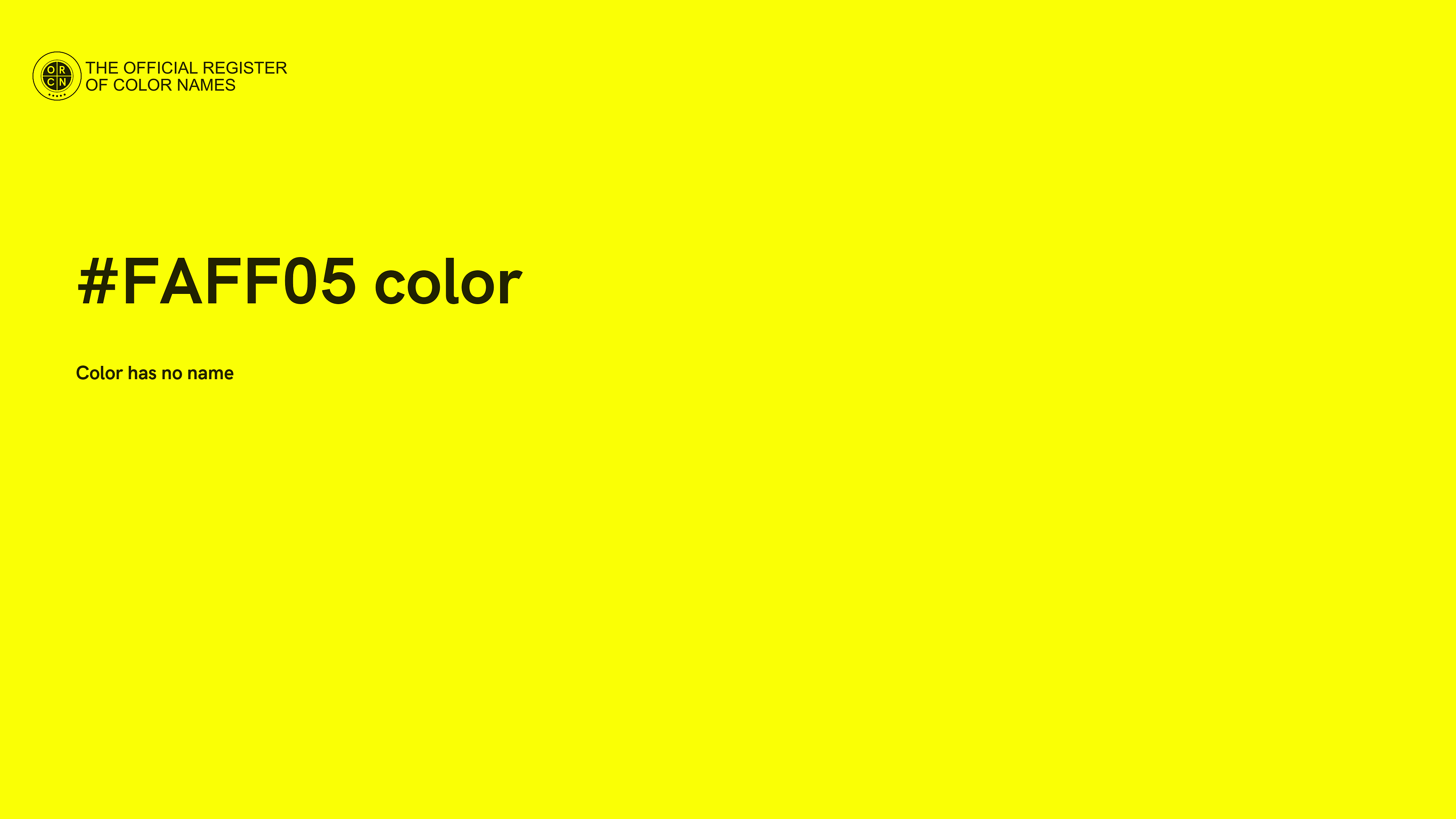 The digital color HEX #FAFF05 belongs to the Yellow Color Family featuring Full Saturation (Saturation Family) and Light (Brightness Family).
