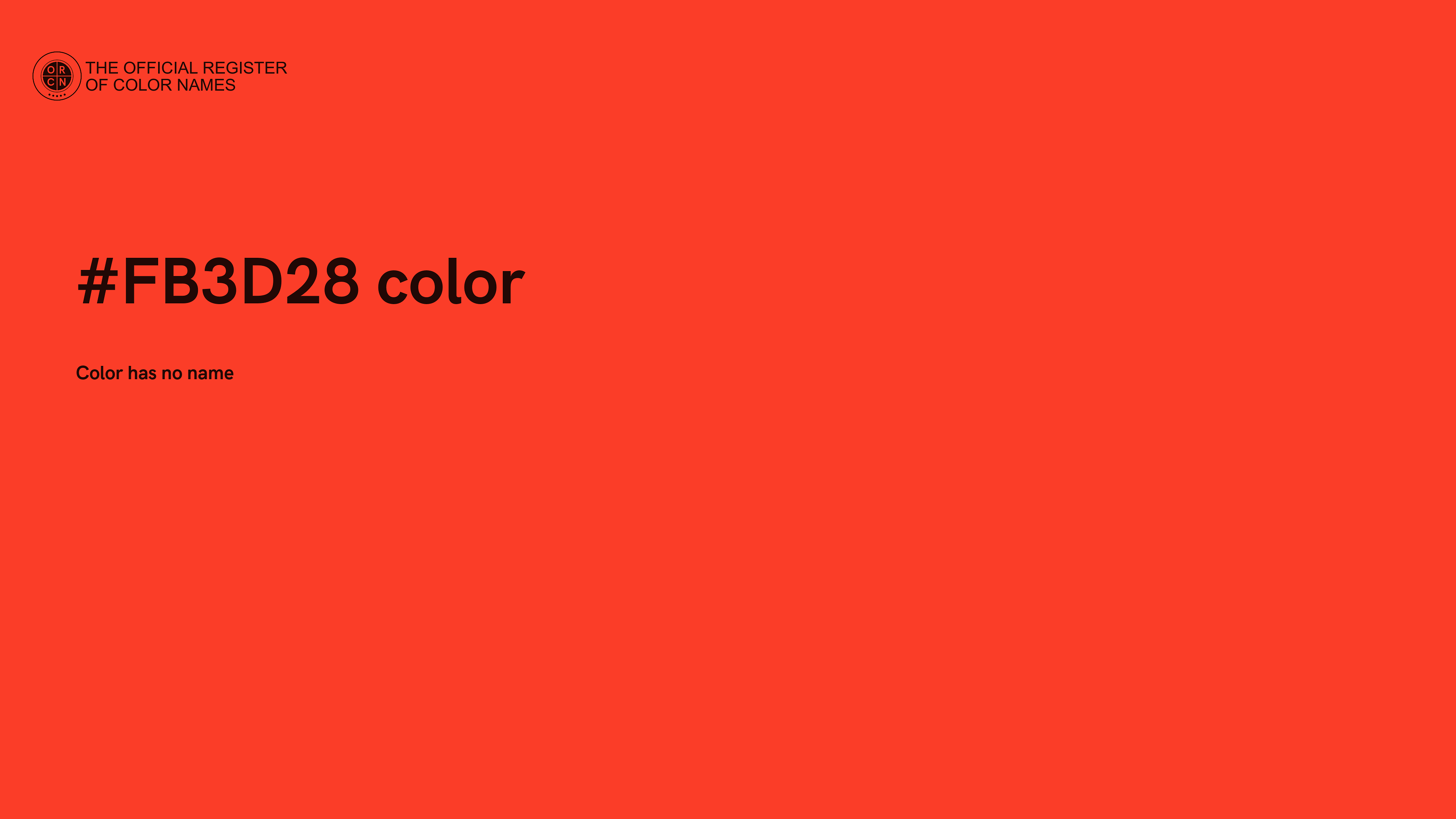 The digital color HEX #FB3D28 belongs to the Red Color Family featuring Full Saturation (Saturation Family) and Light (Brightness Family).