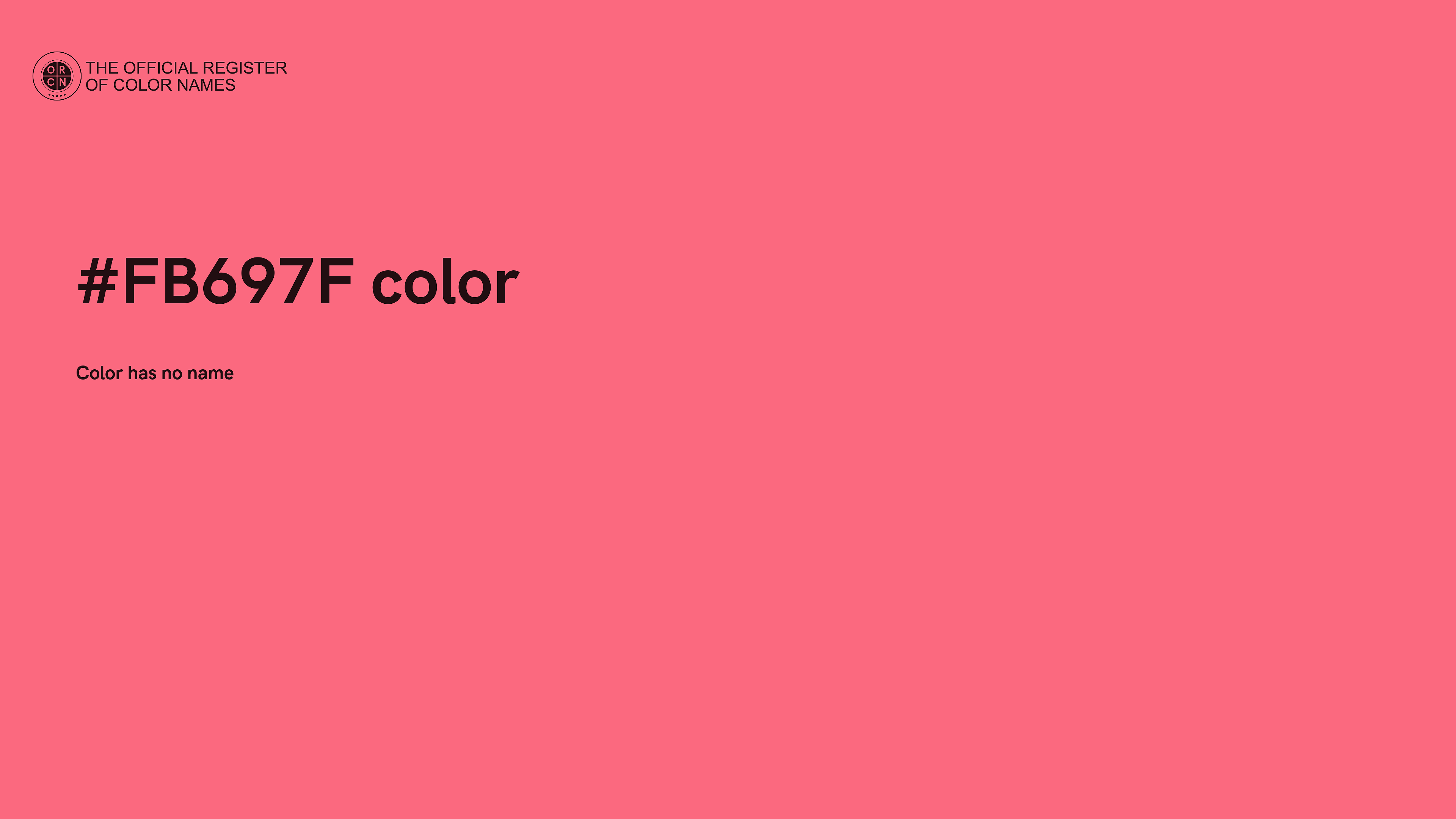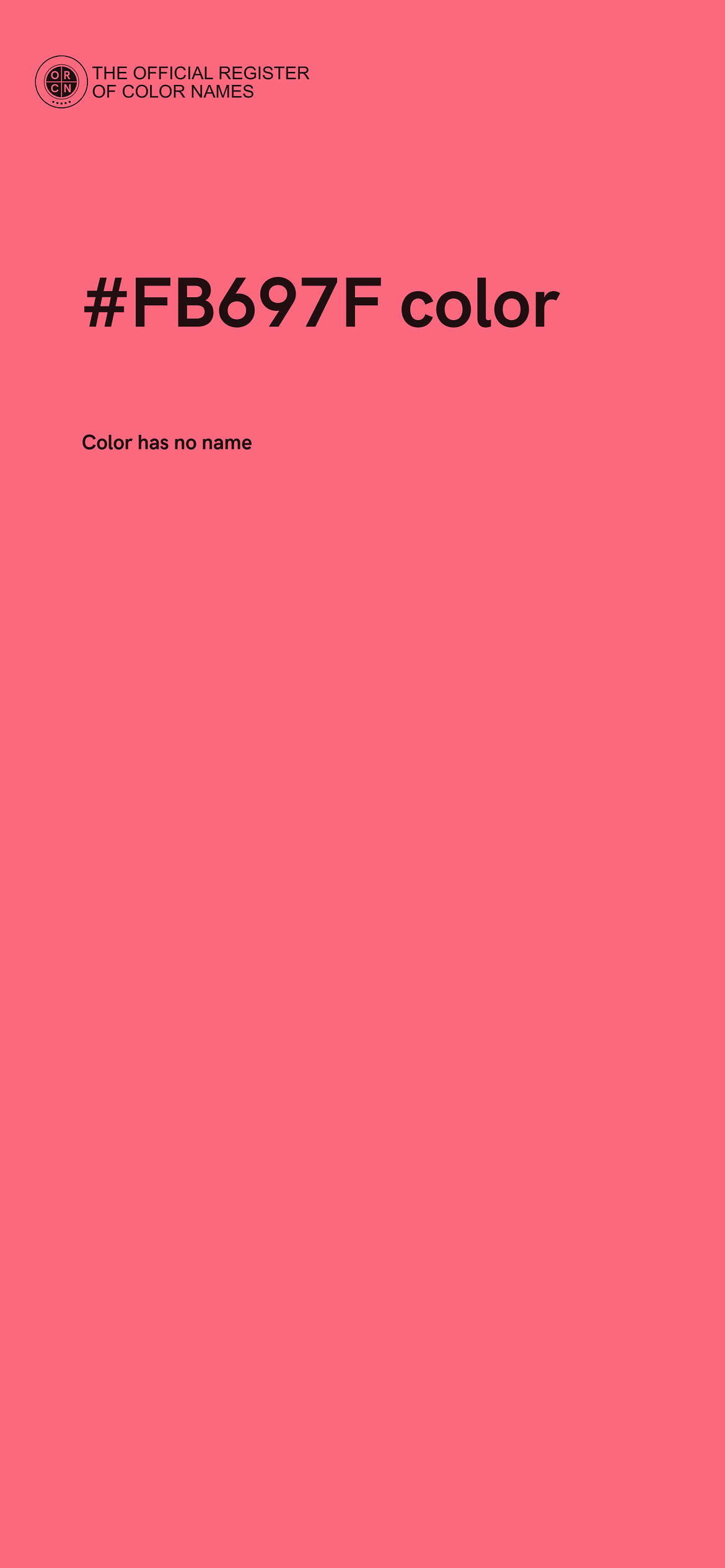 The digital color HEX #FB697F belongs to the Red Color Family featuring Full Saturation (Saturation Family) and Very Light (Brightness Family).