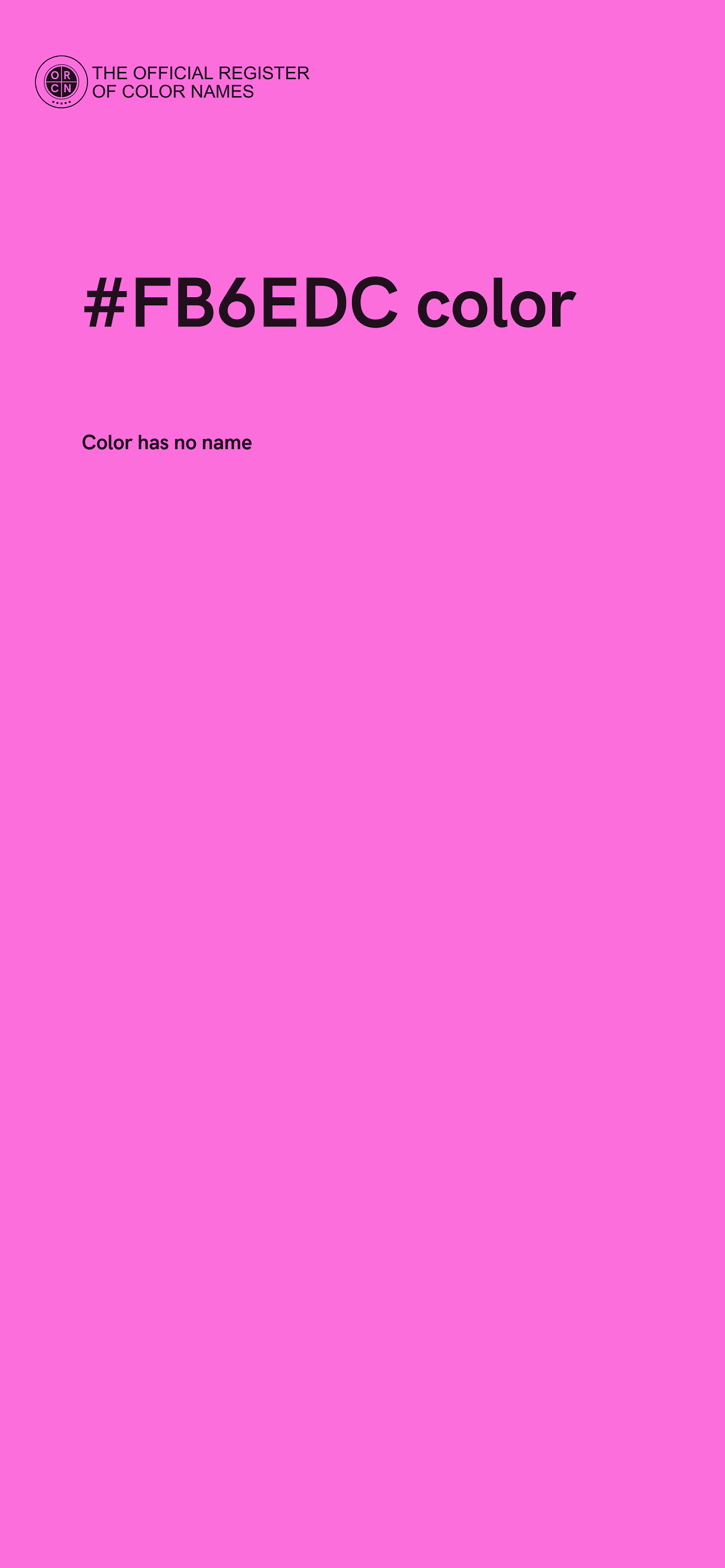 The digital color HEX #FB6EDC belongs to the Magenta Color Family featuring Full Saturation (Saturation Family) and Very Light (Brightness Family).