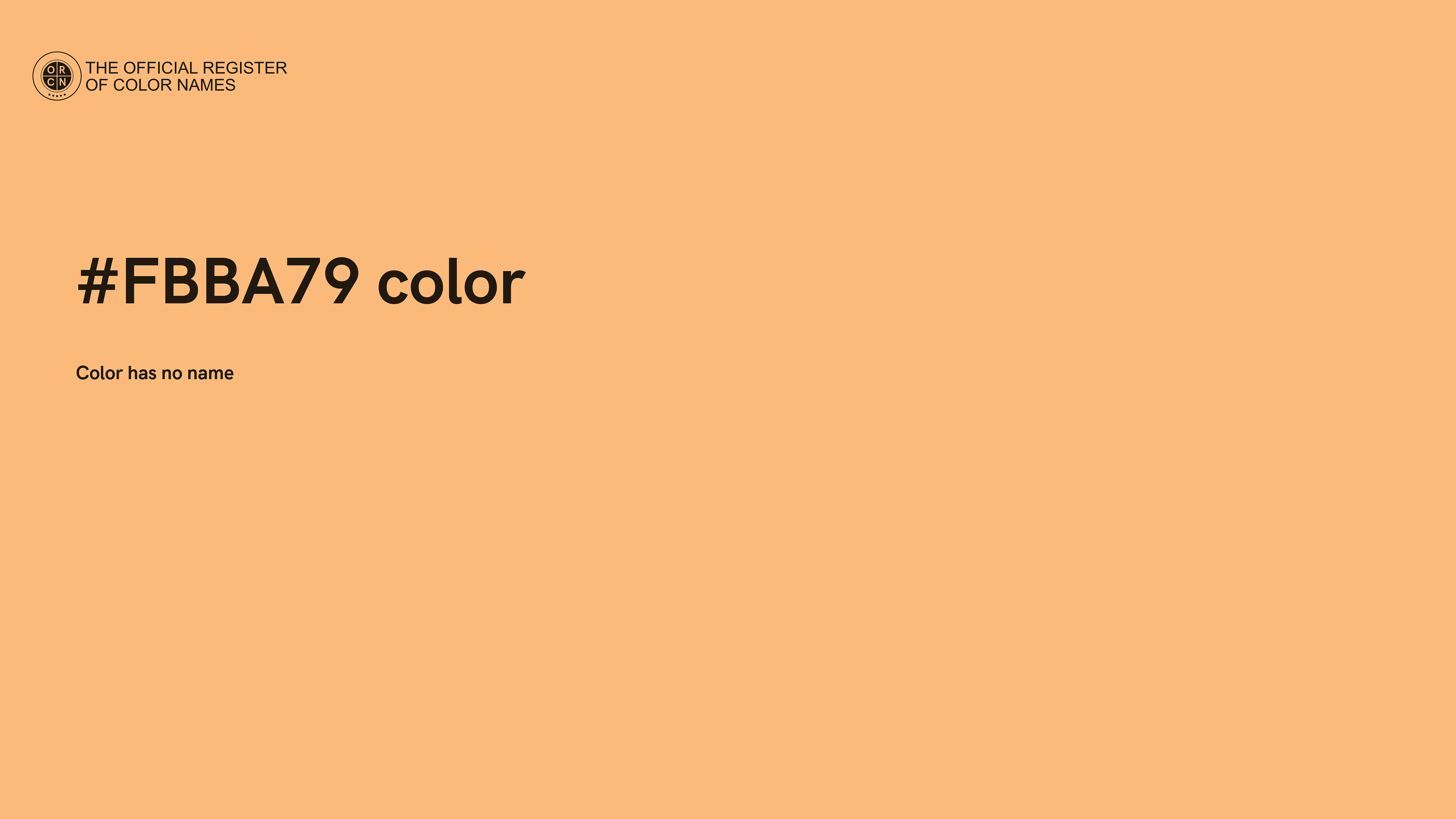 The digital color HEX #FBBA79 belongs to the Orange Color Family featuring Full Saturation (Saturation Family) and Very Light (Brightness Family).