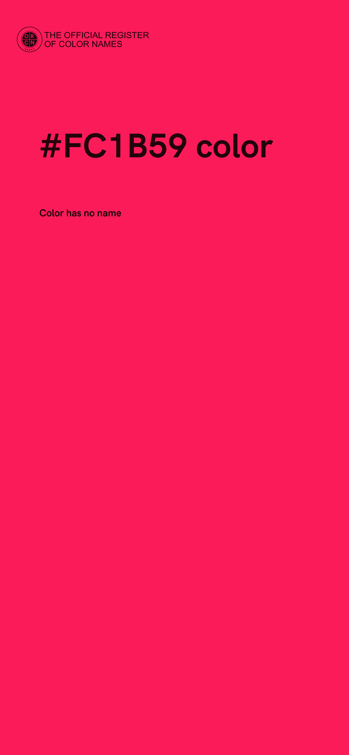 The digital color HEX #FC1B59 belongs to the Rose Color Family featuring Full Saturation (Saturation Family) and Light (Brightness Family).